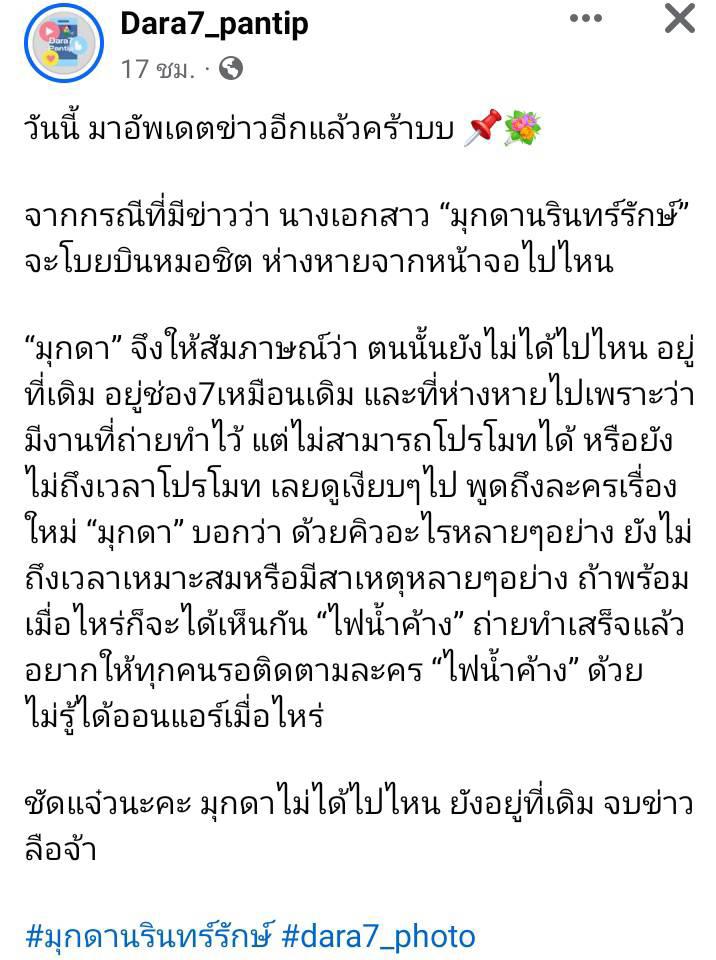 "มุกดา นรินทร์รักษ์" แจงสัญญายังอยู่กับช่อง 7 ไม่ไปไหน
