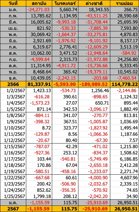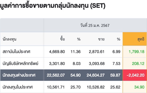 Sinthorn Summary 25/1/2567 : ต่างชาติขายสุทธิ -2,042.20 ลบ.
