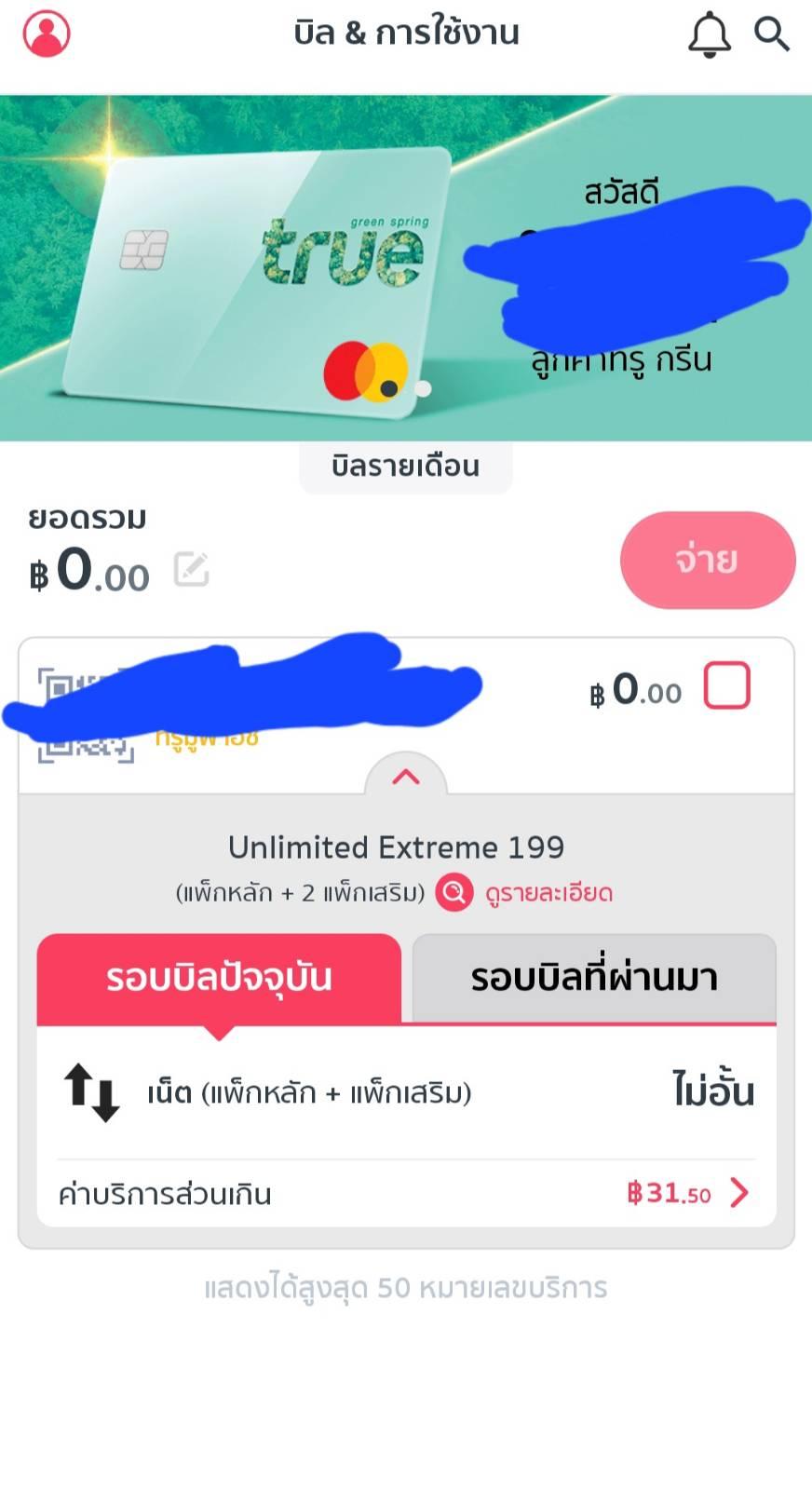 สอบถามหน่อยคับ พอดีผมเข้ามาเช็คค่าบริการของเดือนมค.ซึ่งครบกำหนดวันที่25ที่ผ่านมา แต่เมื่อต้นเดือนผมต้องจ่ายค่าบริการของทรูไปสามร้อยกว่าบาท ซึ่งปกติเดือนละร้อยกว่าๆบาท ไม่เคยถึงสามร้อย ตรงนั้นถือว่าจ่ายไปแล้วก้ไม่ว่ากันคับ แต่วันนี้เข้ามาเช็คอีกรอบ มีค่าบริการส่วนเกิน31.50บาท ไม่ทราบว่าเป็นค่าอะไรคับตามรูป