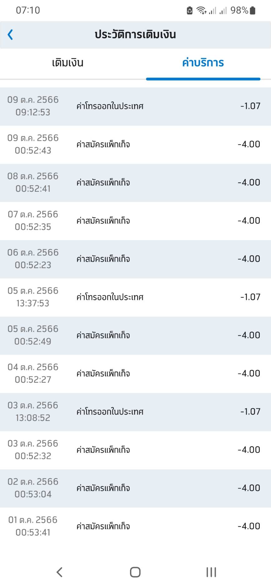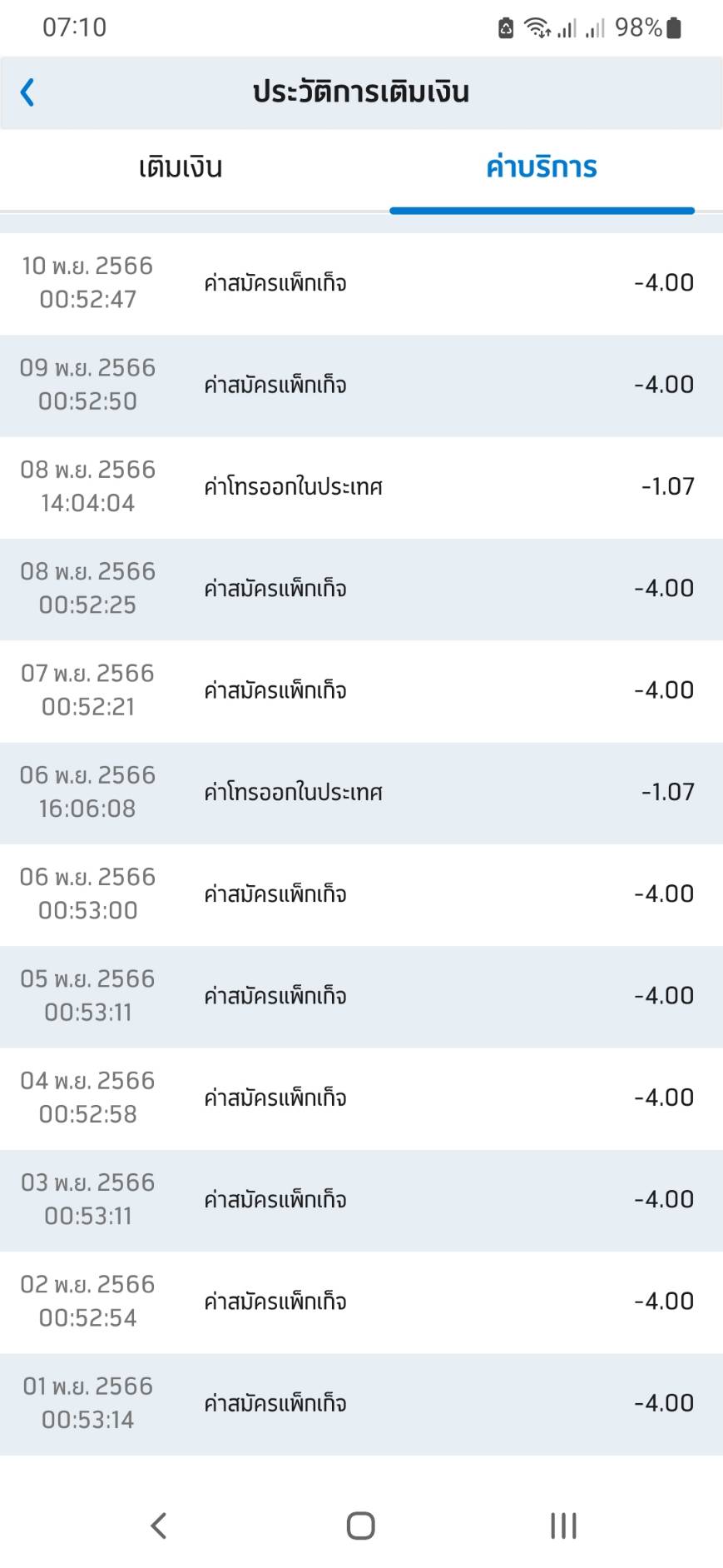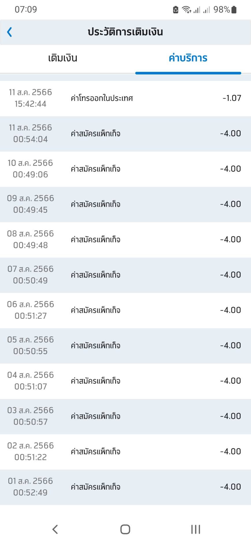ปกติโทรศัพท์ผมใช้ wifi ที่บ้าน ไม่มีการใช้แพ็คเกจเน็ตใดๆ นอกจากออกนอกบ้านแล้วจำเป็นต้องใช้ก็จะซื้อเน็ต 1 วัน เหตุเกิดประมาณเดือนพฤษภาคม 2023 ผมซื้อเน็ต 1 วัน แต่มีการต่ออัตโนมัติ จนถึงสิ้นปี 2023 หักเงินทุกวัน วันละ 4 บาท ผมไม่ได้เช็คยอดวันเพราะจะเติมวันใช้งานประมาณ 1 ปี ฝากเตือนผู้ใช้ระวังด้วยครับ