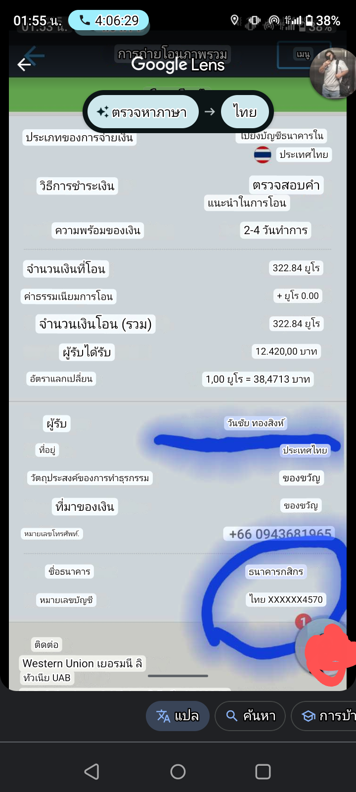 อยากทราบว่า ในรูปนี้คือเขาโอนเงินจากWesternunionมาจริงใช่มั้ยครับโอนเข้ากสิกรโดยตรงเลย เราต้องรอเงินประมานกี่วันครับ