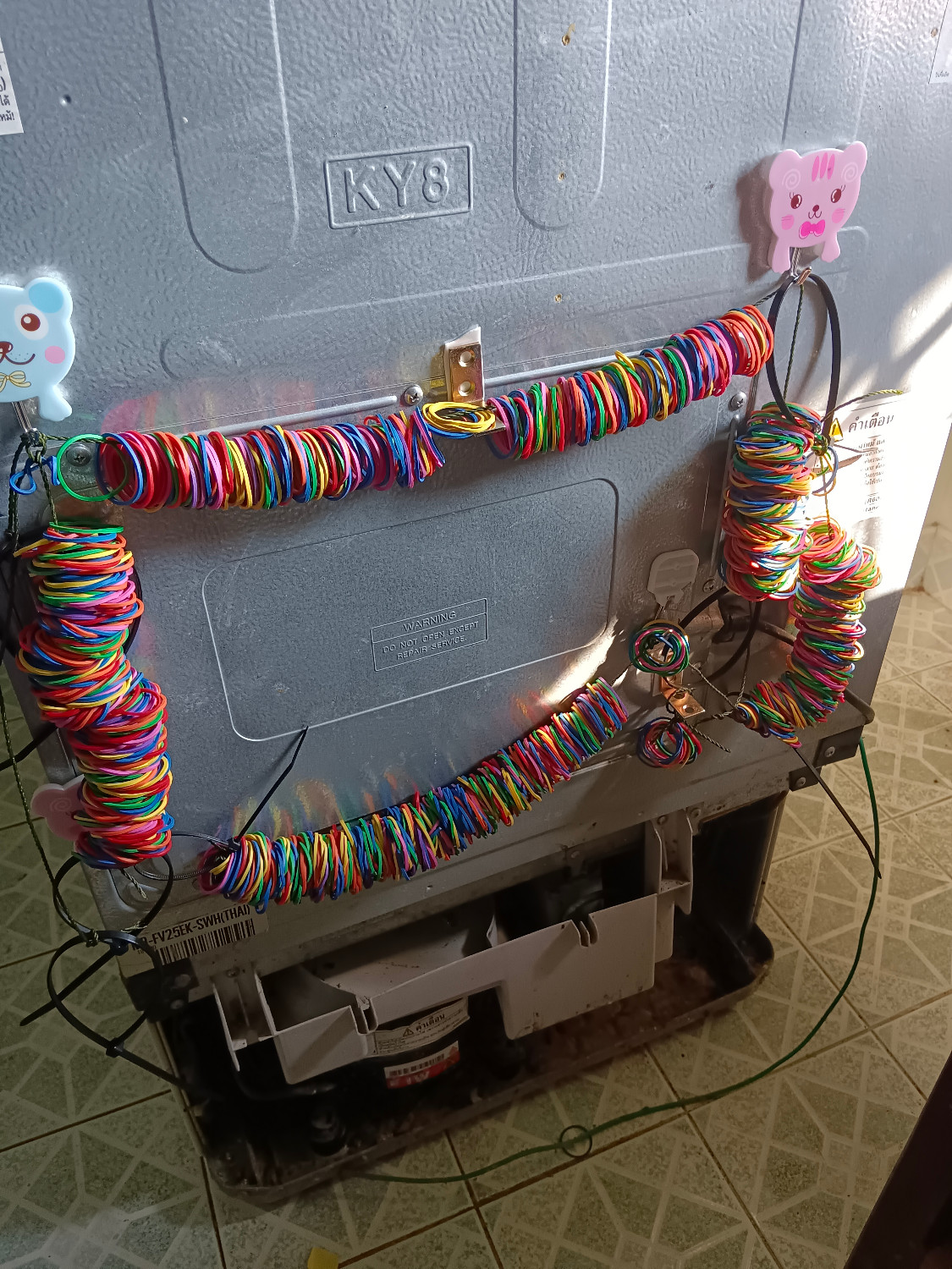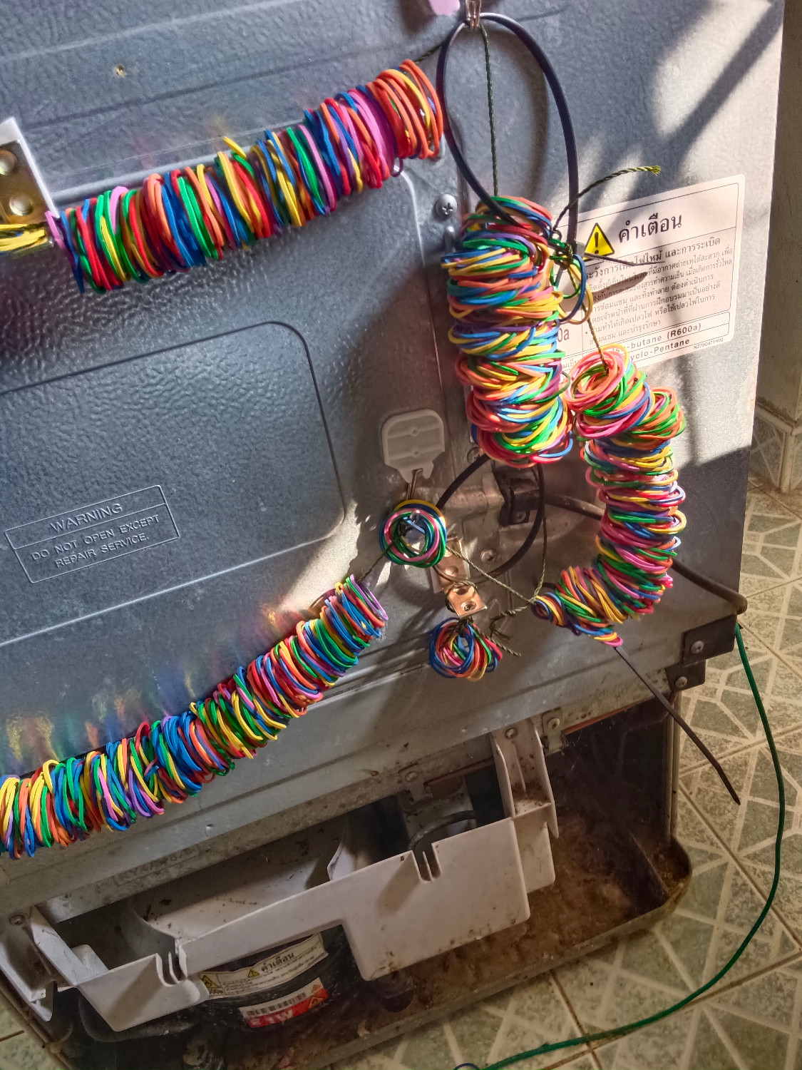 ที่บ้านเพื่อนของเพื่อนพบว่ามดเข้าไปในแผงเมนบอร์ดตู้เย็น ได้ทำการทดลองกันมดเข้าด้วยหนังยาง