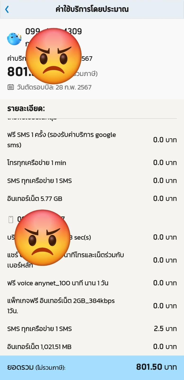 ย้ายค่ายมาสีฟ้าสามวัน อยู่ๆ ก็เสียค่า sms สะงั้น ติดสัญญา 12 เดือน รู้สึกเสียใจมากๆ ที่ย้ายมา โปรจาก 799 ตอนซื้อเครื่องร้านบอกจะลดเหลือ 499 ไม่รู้จะลดจริงรึเปล่า