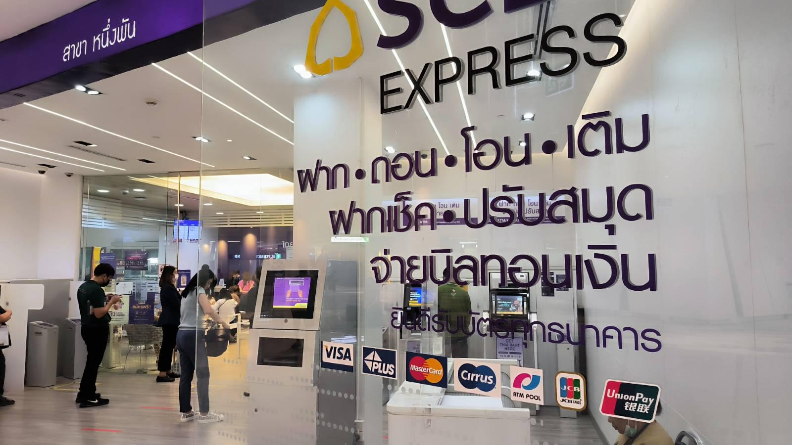 ฉันจะโอนเงินค่าเสื้อที่สั่งซื้อมาค่ะ โดยบัญชีที่ต้องโอนเข้าเป็นของไทยพาณิชย์ แต่ฉันไม่มีบัตรเครดิต/บัตรเอทีเอ็มของไทยพาณิชย์เลย ว่าจะใช้บริการตู้ฝากเงินสด เพราะไม่อยากไปต่อคิวที่เคาน์เตอร์ เสียเวลานา
