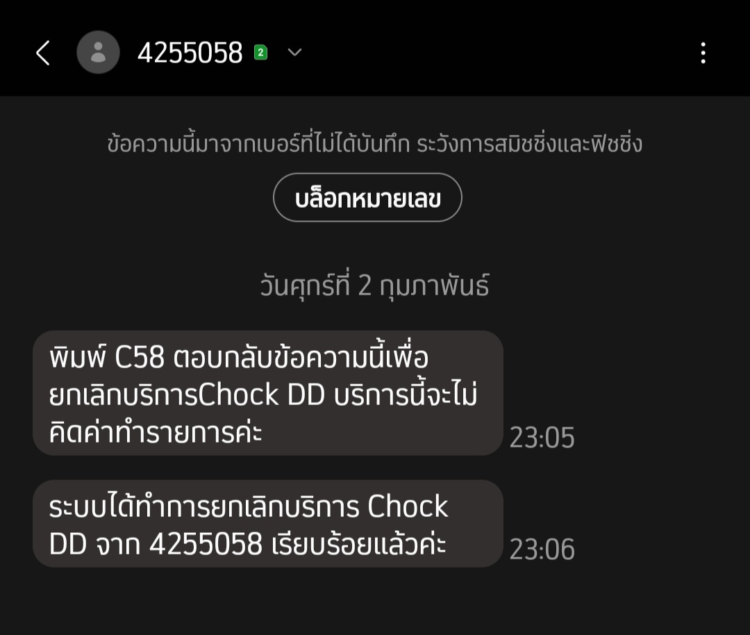 ก่อนเงินในเบอร์จะหายไปมี sms มาบอกตามในรูปที่สอง พอมาเช็คเงินมันเหลือ 300 เลยลองกด *137 กดยกเลิกอะไรสักอย่างมันก็ขึ้นตามรูป เลยสงสัยว่าจะเป็นเพราะ sms นี้หรือป่าว เพราะผมไม่ได้ทำอะไรกับเบอร์นี้เลย ไม่ได้สมัครอะไรไว้ด้วย