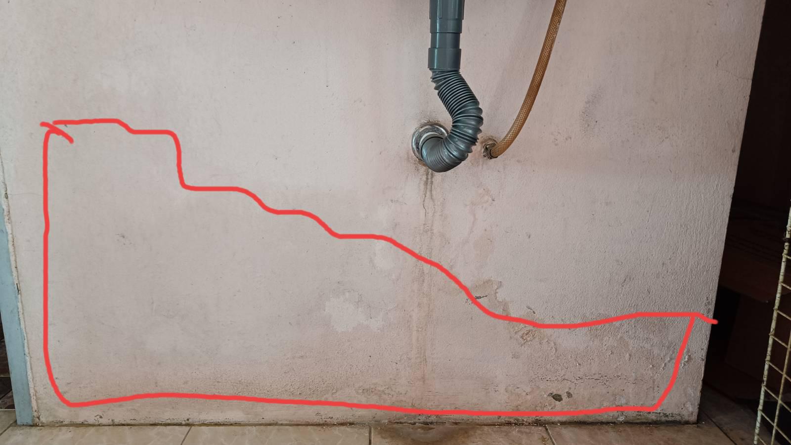 หลายวันต่อมา สังเกตว่ามีรอยน้ำซึมที่ผนังห้องน้ำ คือเป็นผนังตรงอ่าง เลยรุ้เลยว่าน้ำซึม