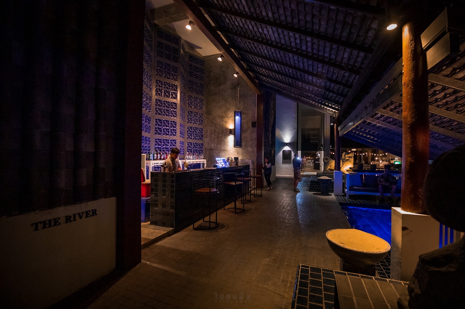 แสงสีในรีสอร์ทยามค่ำคืน ก็จะเกร๋ๆแบบนี้ค่ะ มีบาร์ริมสระด้วยนะคะ 🍹