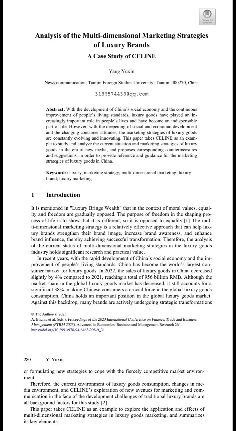 Analysis of the Multi-dimensional Marketing Strategies of Luxury Brands: A Case Study of celine :