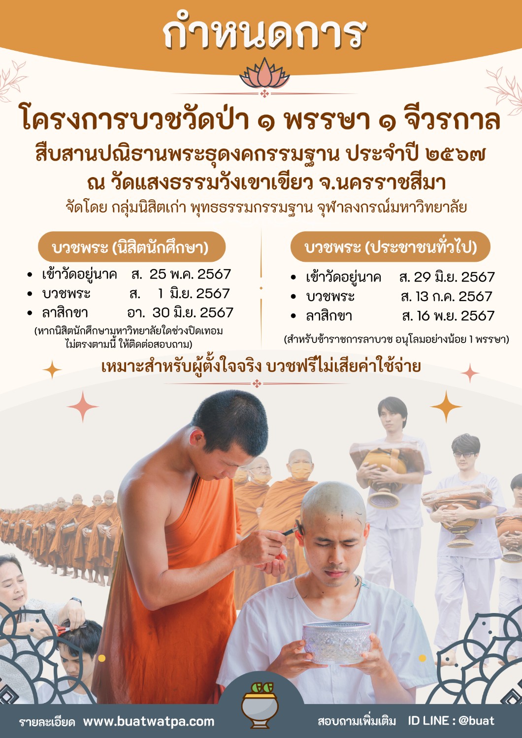 ✅ โครงการบวชวัดป่า ประจำปี 2567 เปิดรับสมัครผู้มีความตั้งใจจริง บวชพระ ฟรี! ไม่เสียค่าใช้จ่าย สืบสานปณิธานพระป่ากรรมฐาน