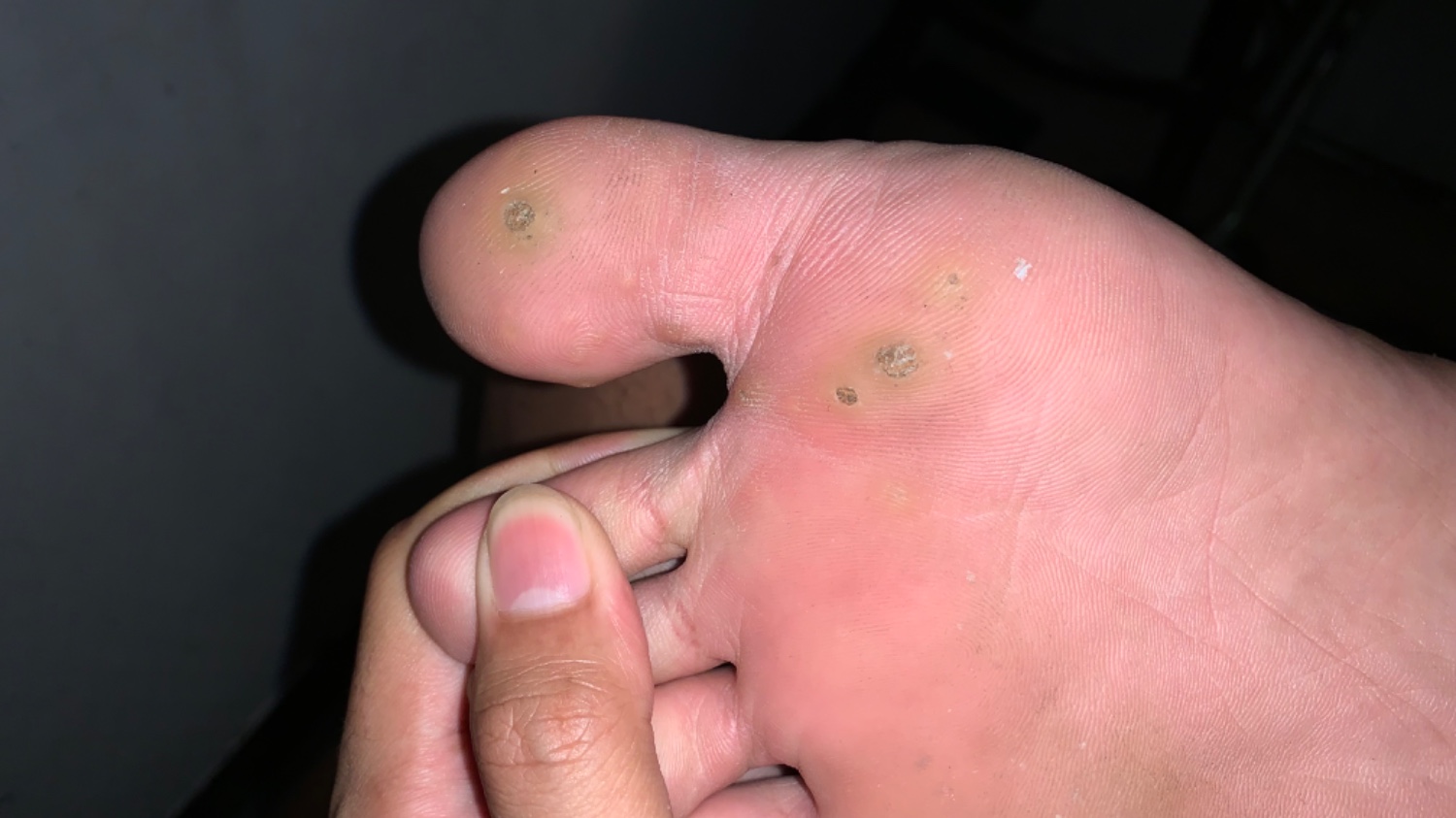 มีตุ่มใสๆขึ้นที่ฝ่าเท้าครับ