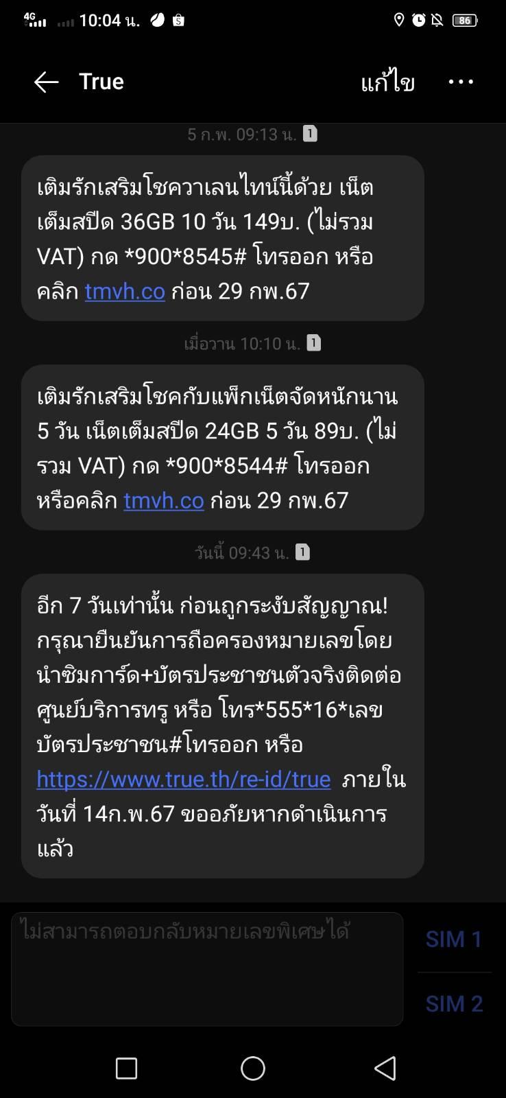 ทรูส่งข้อความว่าให้ต่อเบอร์โทรต้องไปไหมคะ