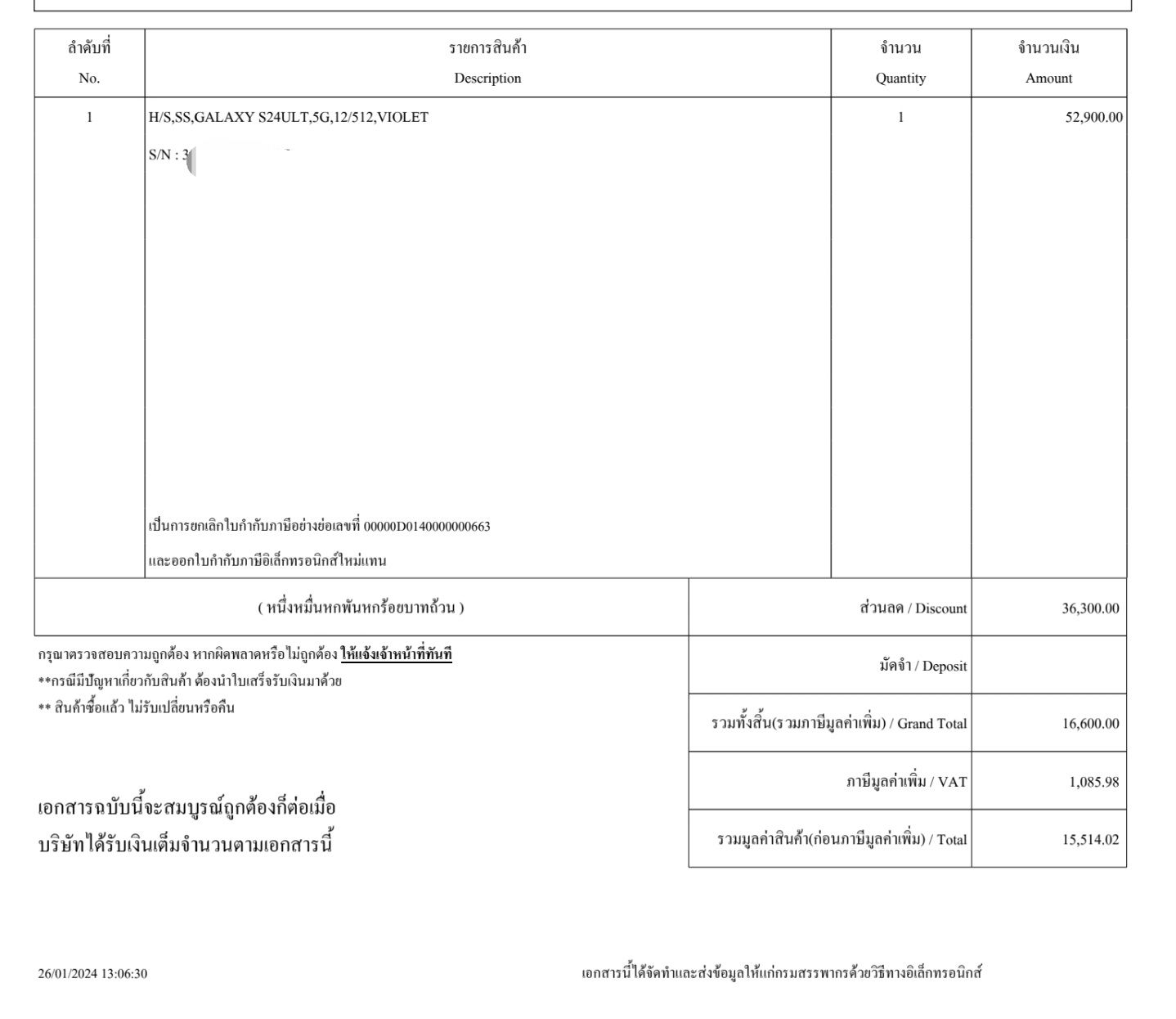 เรื่องมีอยู่ผมได้ทำการ ซื้อโทรศัพท์มือถือใหม่ โดยเลือกการเทรดเครื่องกับทาง true โดยการเทรดผ่าน remobie ซึ่งได้มาในราคา 31000 บาท (ค่าเครื่อง 18000 + top-up 13000) และผมได้ทำการขอใบกำกับภาษี E-tax ซึ่งืาง true ได้ออกใบกำกับภาษี มาให้ตามรูปครับ โดยรำค่าเทรดเครื่องของผมมาเป็นส่วนลดทั้งหมดแบบนี้ถูกต้องหรือไม่ครับ เบื้องต้นสอบถามทาง true ไปแจ้งมาว่าค่าเทรดจะเป็นส่วนลด นั้นก็แสดงว่าทาง true ก็ต้องไม่ได้รับเงินค่าเทรดเครื่องของผมจากทาง remobie ใช่ไหมครับ แต่ถ้าทาง true มีการได้รับเงินจากทาง remobie ก็เท่ากับการออกใบกำกับภาษีที่ออกให้ผมไม่ถูกต้องใบ่ไหทครับ ไม่ทราบว่าผมเข้าใจถูกไหมครับ