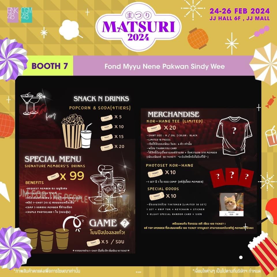 รายละเอียดบูธกิจกรรมภายในงาน BNK48 & CGM48 Matsuri 2024