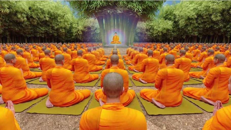 2. มีพระสงฆ์จำนวน 1,250 รูป มาประชุมพร้อมกันโดยมิได้นัดหมาย ณ วัดเวฬุวัน เมืองราชคฤห์ แคว้นมคธ เพื่อสักการะพระสัมมาสัมพุทธเจ้า
