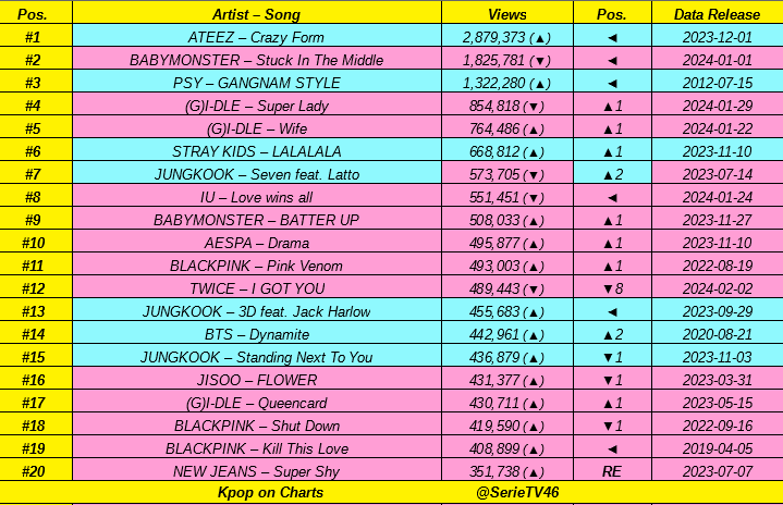 🔥 Top 20 most views Kpop Acts MV in LAST 24 hours: