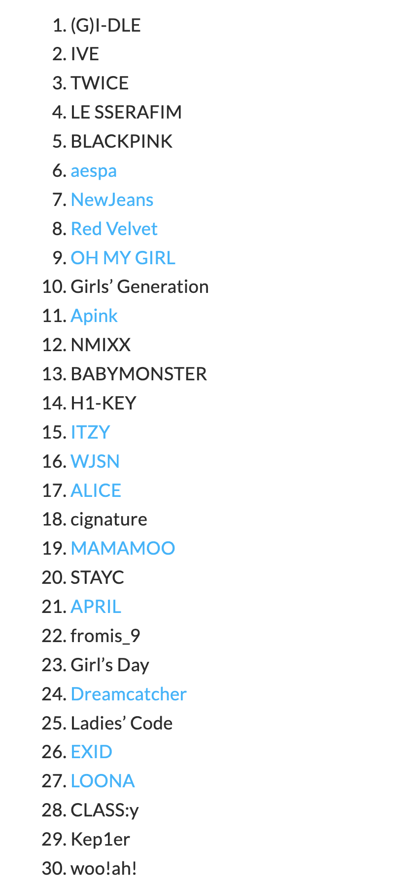 การจัดอันดับถูกกำหนดโดยการวิเคราะห์การมีส่วนร่วมของผู้บริโภค การรายงานข่าวของสื่อ การโต้ตอบ และดัชนีชุมชนของเกิร์ลกรุ๊ปต่างๆ โดยใช้ข้อมูลขนาดใหญ่ที่รวบรวมตั้งแต่วันที่ 11 มกราคม ถึง 11 กุมภาพันธ์