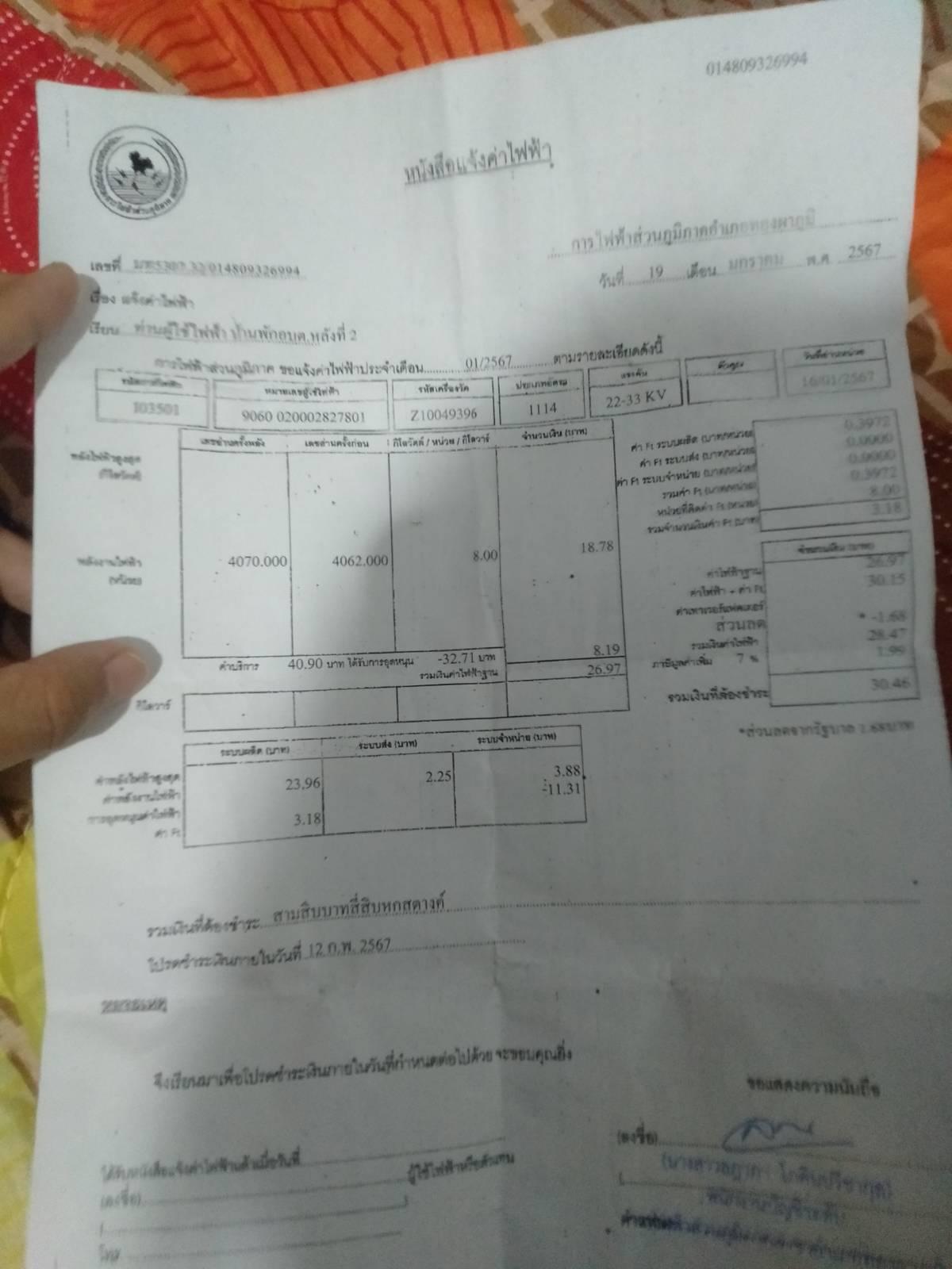 ข้อมูลการขอใช้ไฟฟ้าครับ - บ้านพักอาศัย - ไม่มีโซลาร์เซลล์ - ขอใช้ไฟ 3 เฟส 15 (45) A - มิเตอร์เป็นแบบดิจิทัล 5 (100) A เพิ่งขอใช้ไฟฟ้าต้นปีนี้ เลขมิเตอร์ในใบแจ้งค่าไฟฟ้ามี 2 บรรทัดมาตั้งแต่ต้น แต่บรรท