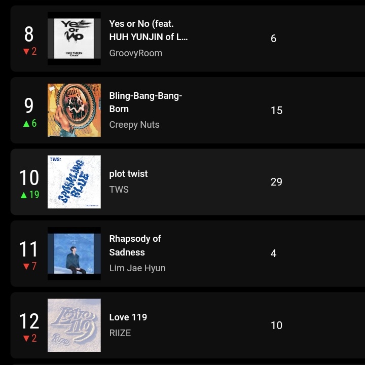 "SPAGHETTI (ft. j-hope)" – 9PM KST: #1 Bugs (+1) *new peak* #4 MelOn (=) #6 FLO (=) *peak* #19 Genie (-2) เหลือแต่นังจีนี่เนี่ยขึ้นยากขึ้นเย็น เลขสองหลักอยู่อย่างนั้น