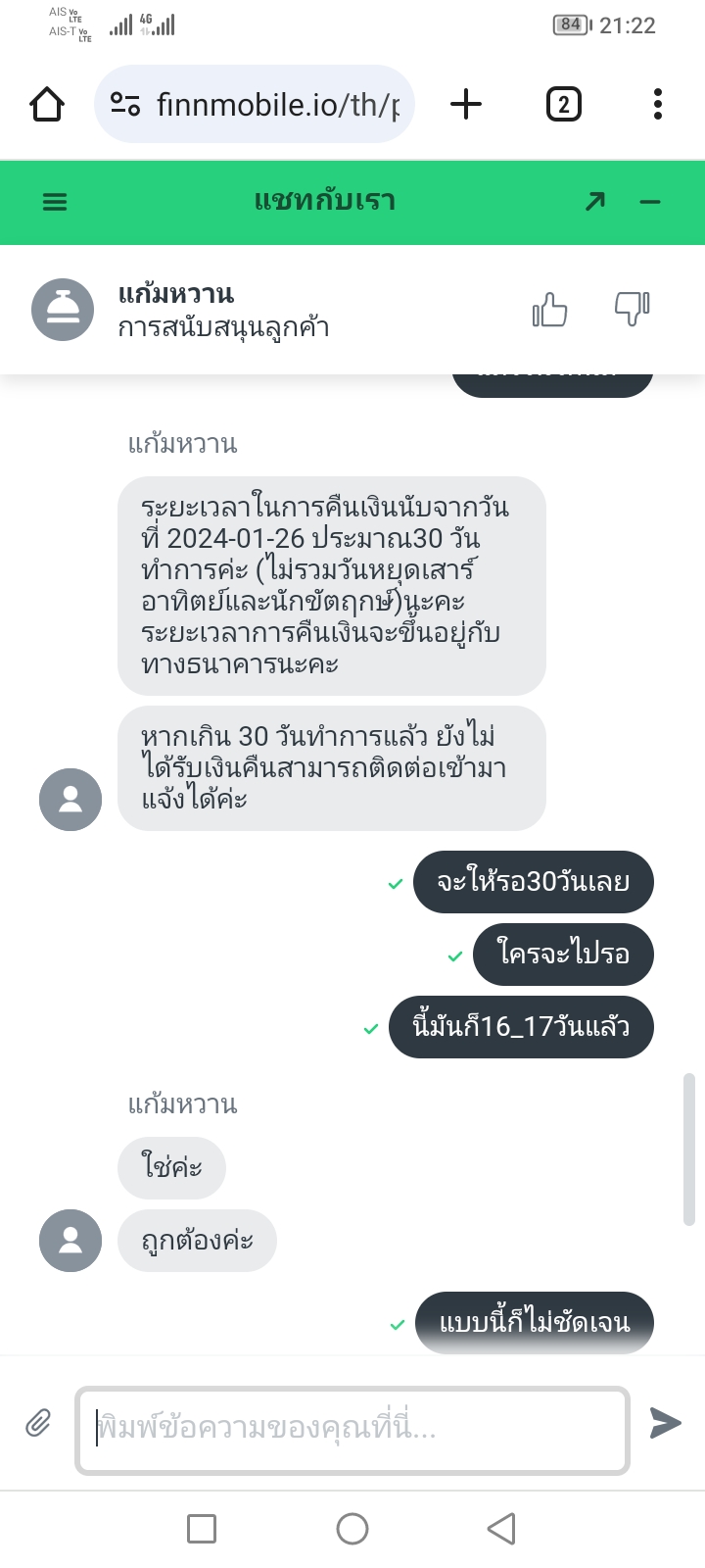 มีใครเคยใช้ finn mobile ไหม 16_17วันแลัว ยังไม่ได้เงินคืน