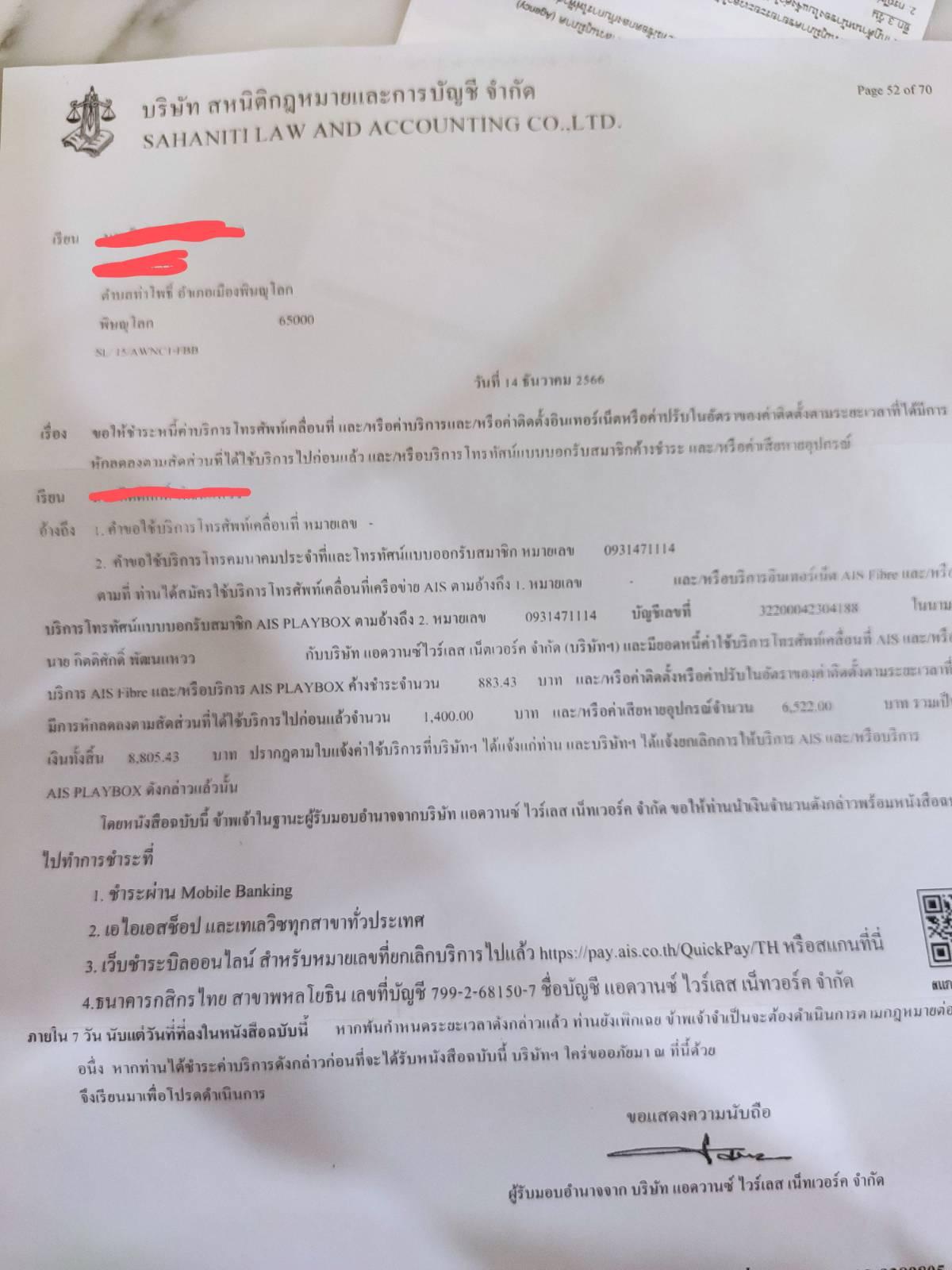 ค้างชำระค่าบริการ ais fiber