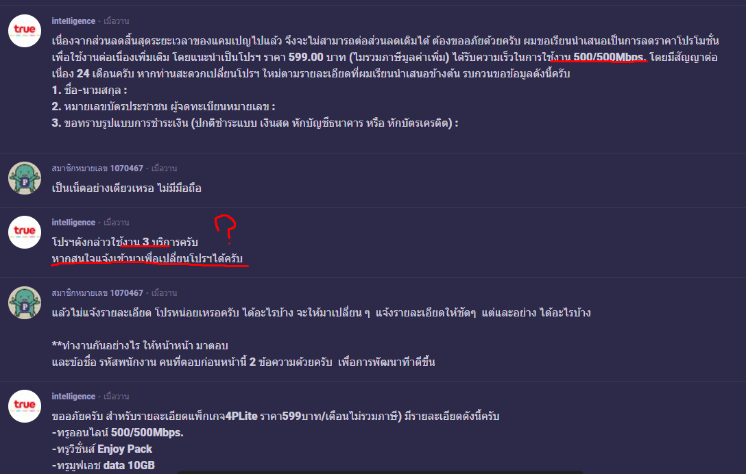 จะให้ต่อโปรอย่างเดียว โดนไม่แจ้งรายละเอียด ว่าได้อะไร เท่าไหร่ ต้องคุยกันหลาย กระทู้กว่าจะได้คำตอบ เราจะติดสัญญาอะไร ควร บอกรายละเอียดให้ลูกค้า ชัดเจน