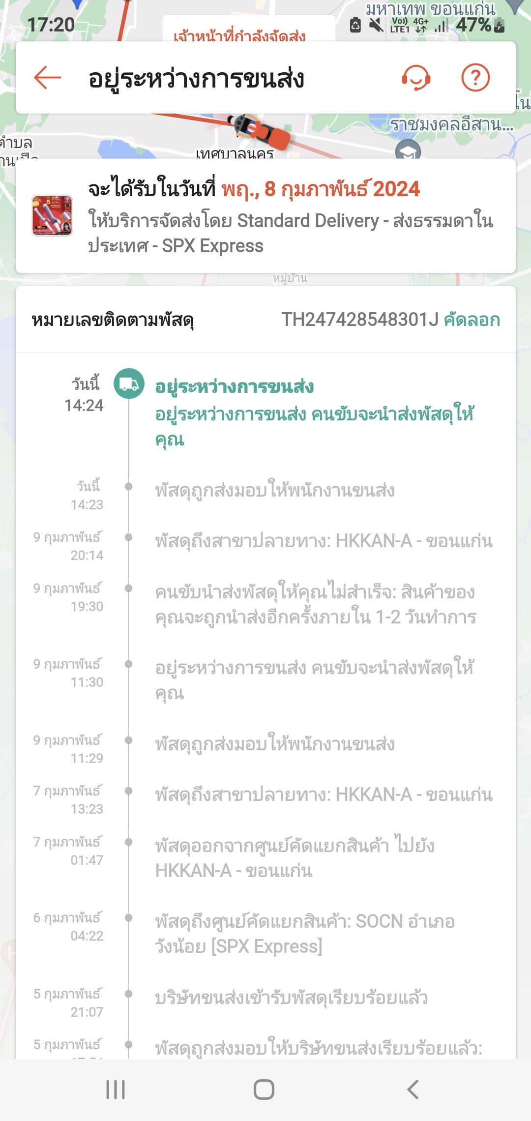 ขนส่งส่งช้ามากค่ะสั่งตั้งแต่วันที่4วันนี้วันที่12ไม่มาส่งสักที