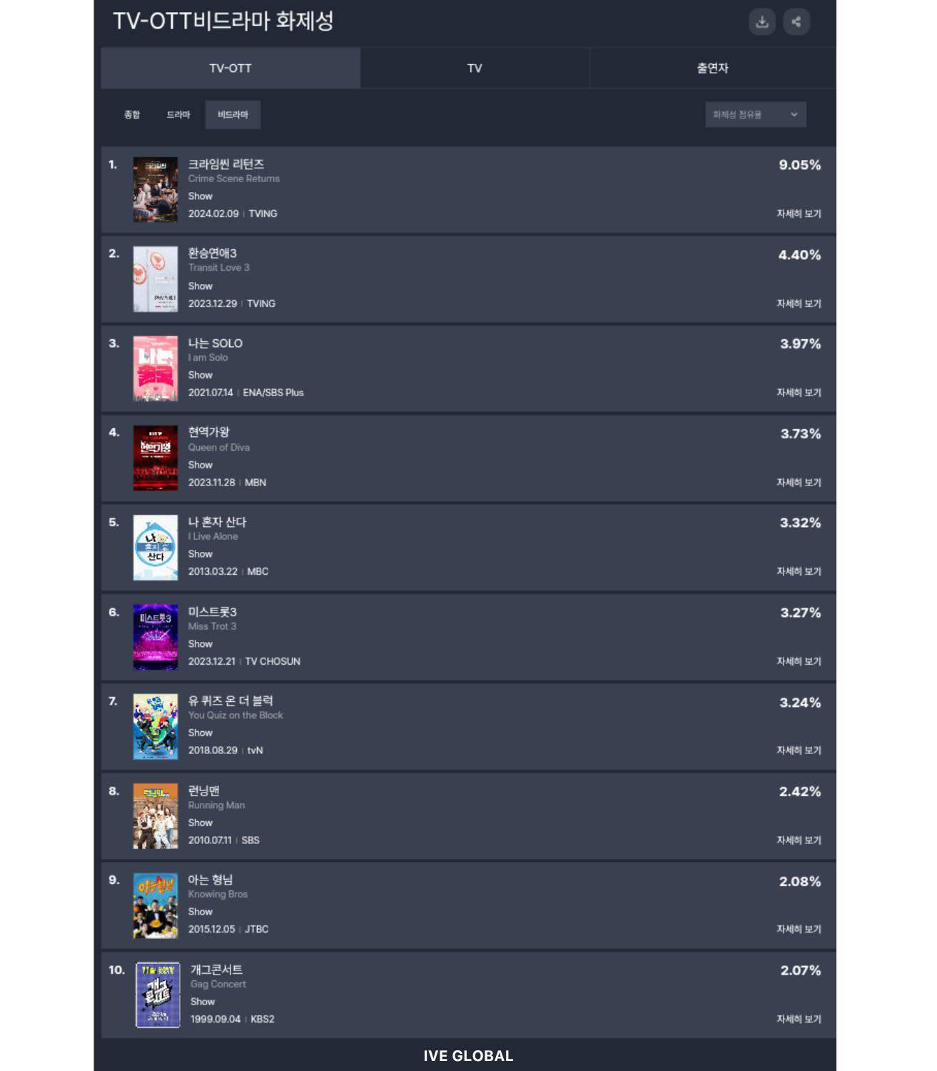 IVE - อันยูจิน และทีม Crime Scene Returns พารายการขึ้นอันดับ 1 ใน TVing