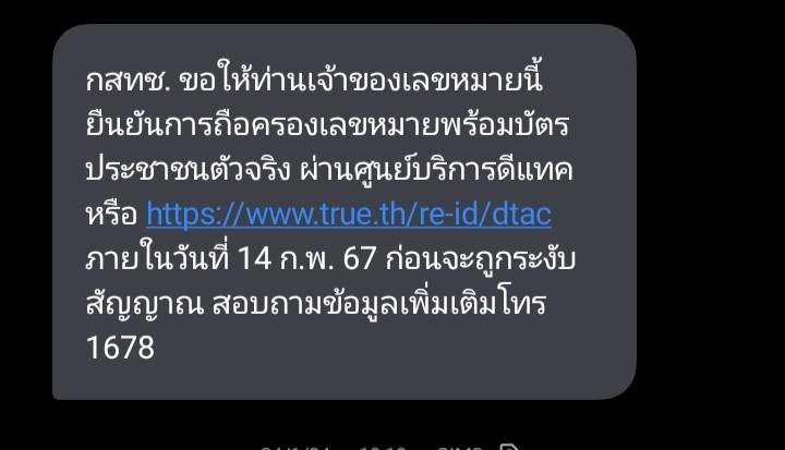 กสทช. ส่ง SMS ให้ไปยืนยันหมายเลข เเต่พอไปยืนยันกลับทำไม่ได้ เพราะซื้อซิมมาจากในเน็ต (ทรู)