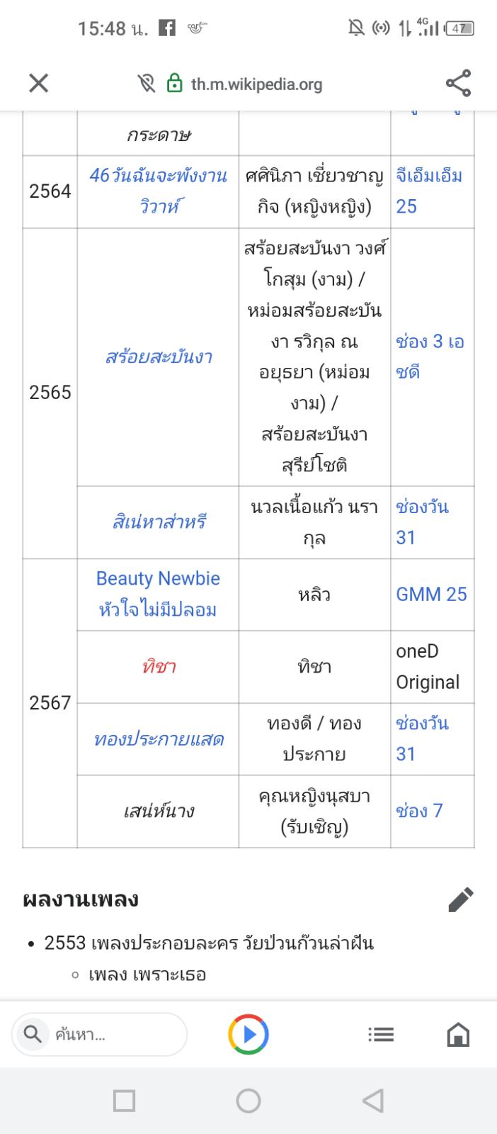ในวิกิบอก ใบเฟิร์น เล่น"เสน่ห์นาง" ช่อง7ด้วย จริงหรือ?????