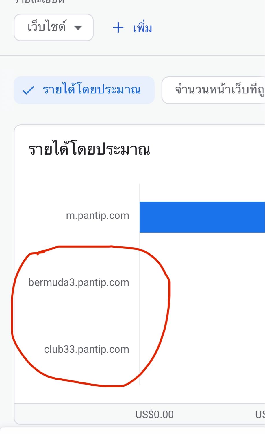 พอดีเข้าไปดูหน้ารายงาน เห็นมี 2 อัน (ในวงกลมสีแดง) เพิ่มขึ้นมา ของท่านอื่นๆมีขึ้นแบบนี้ไหมคะ มันคืออะไร แต่เดิมจะมี m.pantip อย่างเดียว