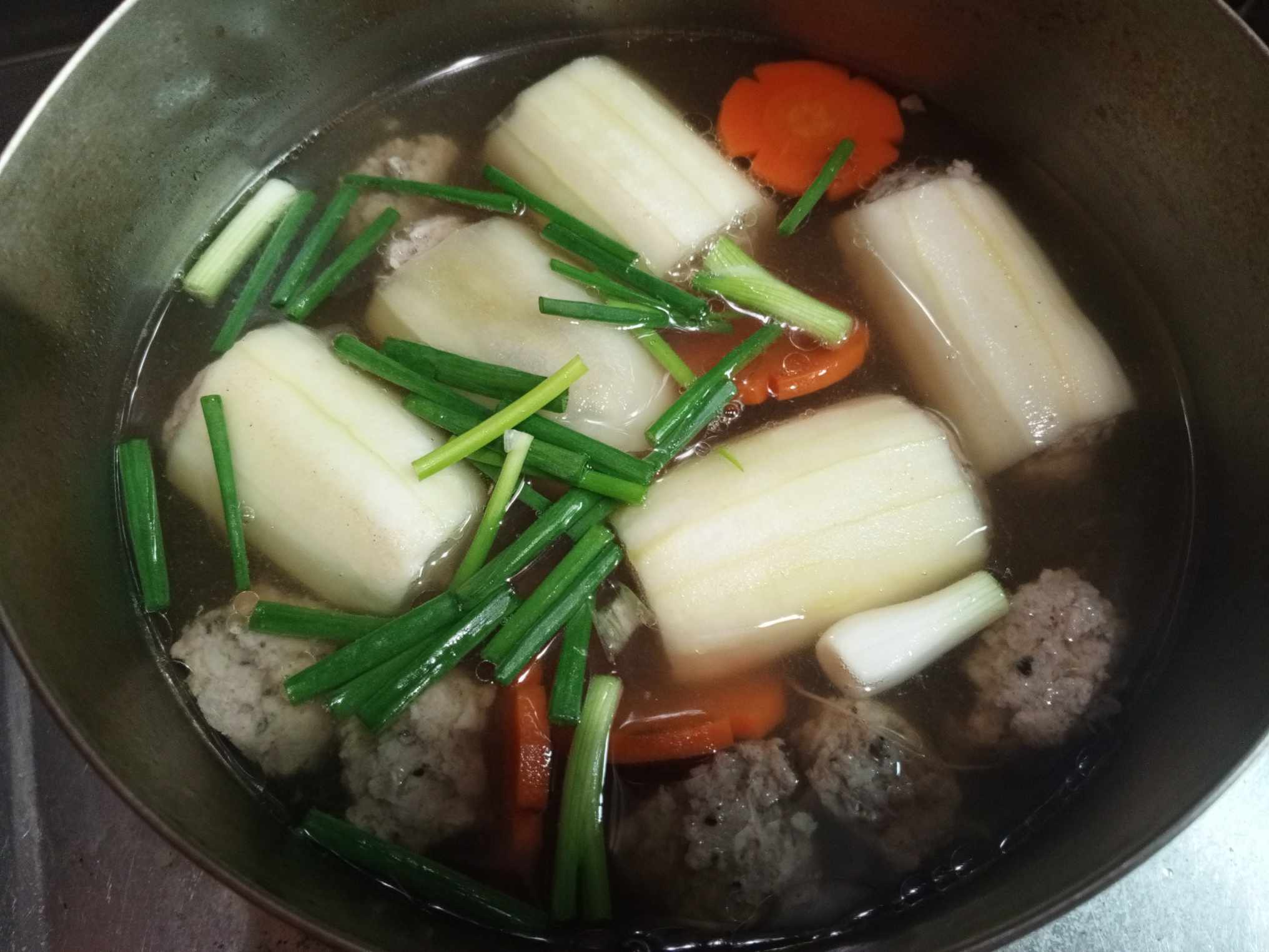 เมื่อทุกอย่างสุกดีแล้ว ใส่ต้นหอมค่ะ