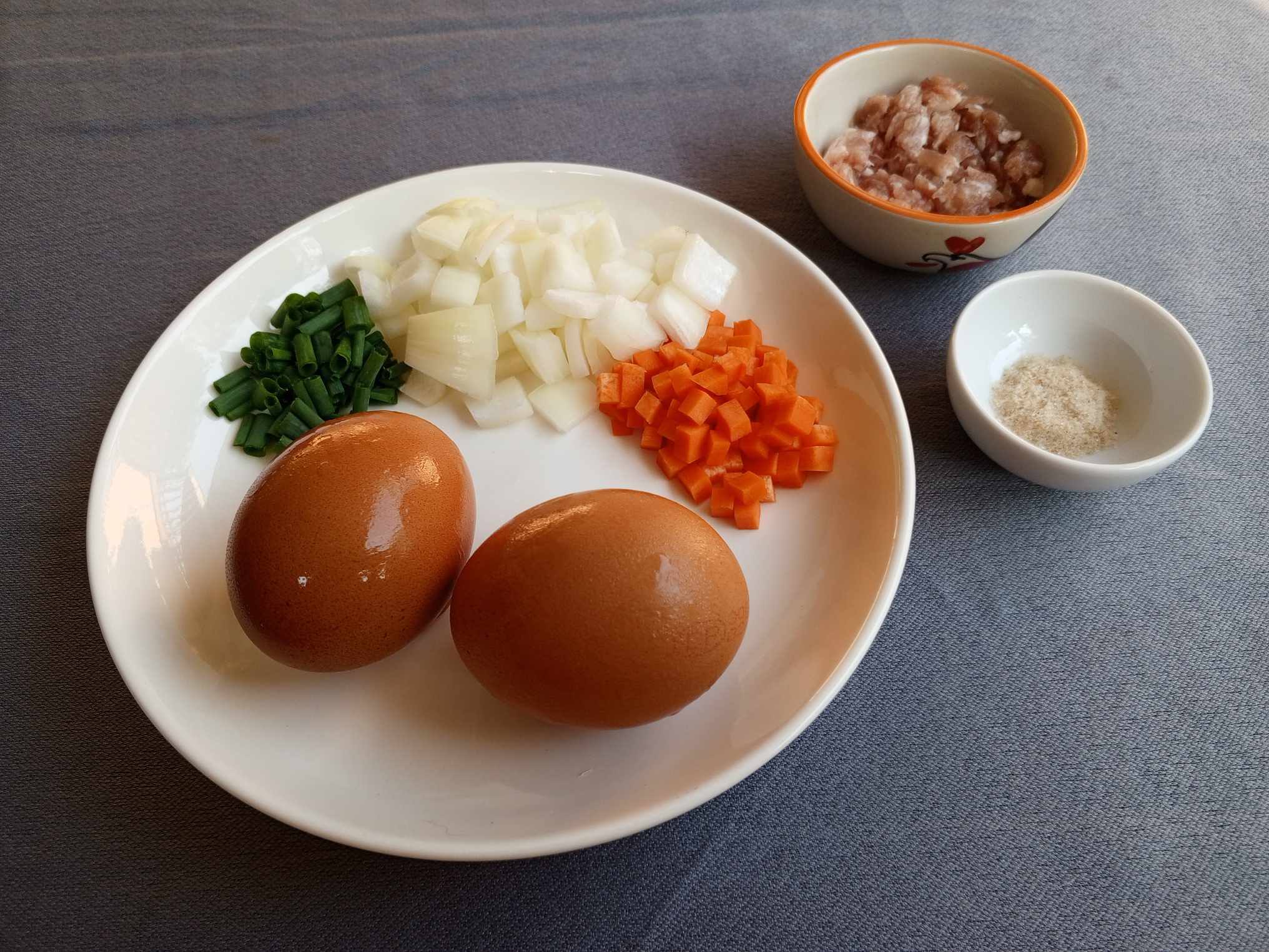 วัตถุดิบและเครื่องปรุงไข่เจียวหมูสับ