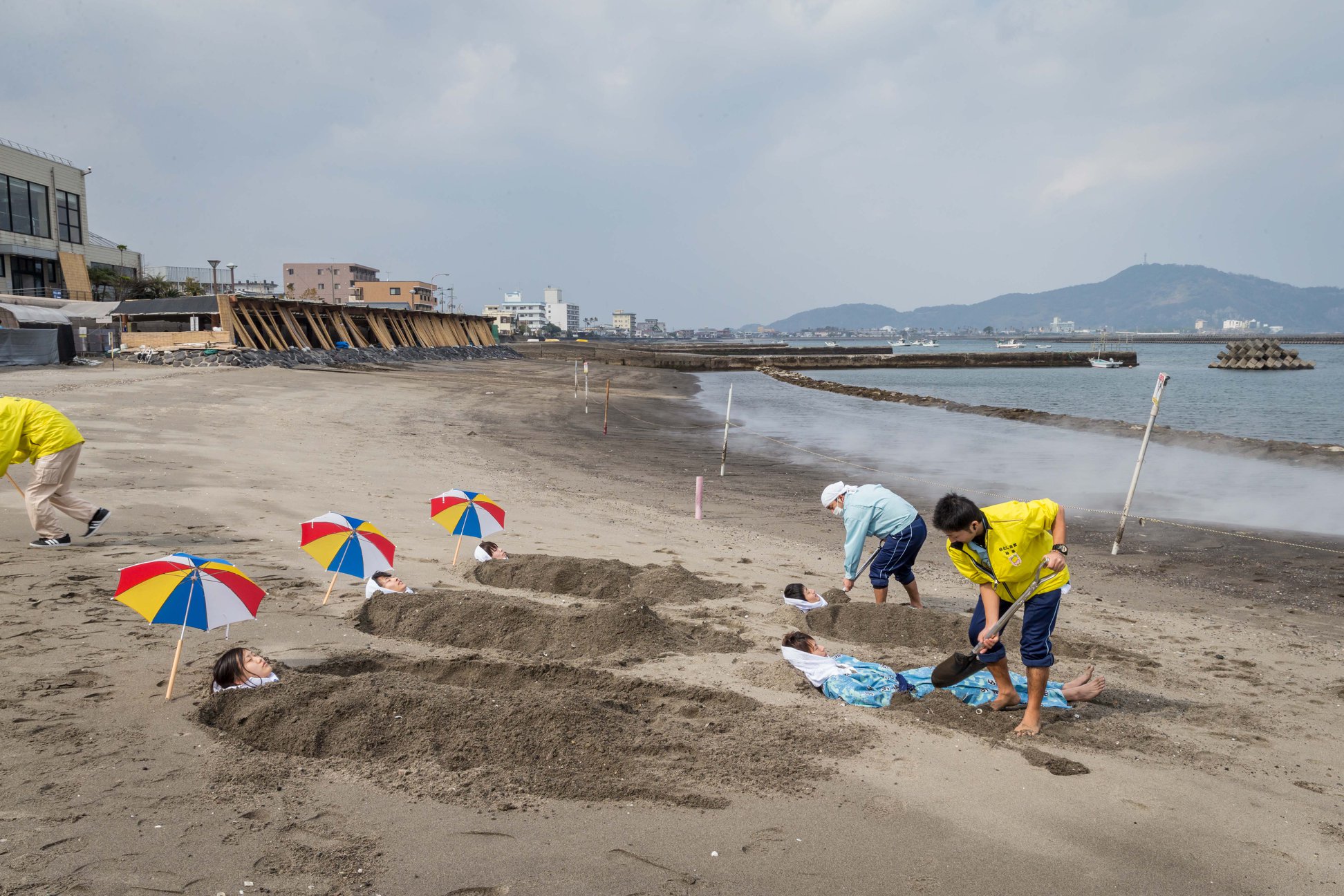 หากอยากมีประสบการณ์การอบทรายร้อนสีดำธรรมชาติที่ดีต่อใจและร่างกายไม่ควรพลาดที่นี่ การนอนอบทรายร้อนได้รับความนิยมมาตั้งแต่สมัย 300 ปีก่อน ซึ่งนักท่องเที่ยวจะต้องใส่ชุดยูคาตะลงไปนอนบนทรายร้อนๆ จากนั้นก็จะมีพนักงานคอยโกยทรายมากลบที่ตัวให้ ความร้อนจากทรายทำให้รู้สึกสบายตัว เชื่อกันว่าจะช่วยให้ระบบไหลเวียนเลือดในร่างกายทำงานได้เป็นปกติและมีประสิทธิภาพมากขึ้น อีกทั้งยังช่วยขับของเสียออกทางเหงื่ออีกด้วย เด็กๆ จนถึงผู้สูงวัย ก็สามารถเข้าใช้บริการอบทรายร้อนนี้ได้