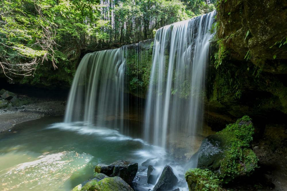 น้ำตกNabegataki เป็นน้ำตกขนาดย่อมในหุบเขาจังหวัดคุมาโมโตะที่เกิดจากการระเบิดของภูเขาไฟเมื่อ 90,000 ปีก่อนแต่เพิ่งรู้จักกันอย่างกว้างขวางเมื่อไม่นานมานี้ ตั้งอยู่ไม่ไกลจากเมืองออนเซนชื่อดังอย่าง Kurokawa Onsen มีจุดเด่นคือความสวยงามที่เกิดจากผืนน้ำตกที่แผ่ตัวเป็นแนวกว้างมองดูคล้ายม่านใหญ่สีขาว โดยด้านหลังของม่านน้ำตกจะสามารถเดินเข้าไปได้ด้วย ไม่ค่อยเห็นน้ำตกที่เดินเข้าด้านหลังได้ จึงเลือกมาแนะนำกัน