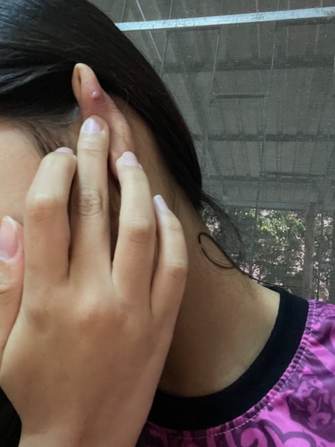 หนูพึ่งเจาะมา1เดือนตอนนี้มีปุ่มบวมๆหลังหูไม่มีหนองแต่หนูนอนทับทุกวันน