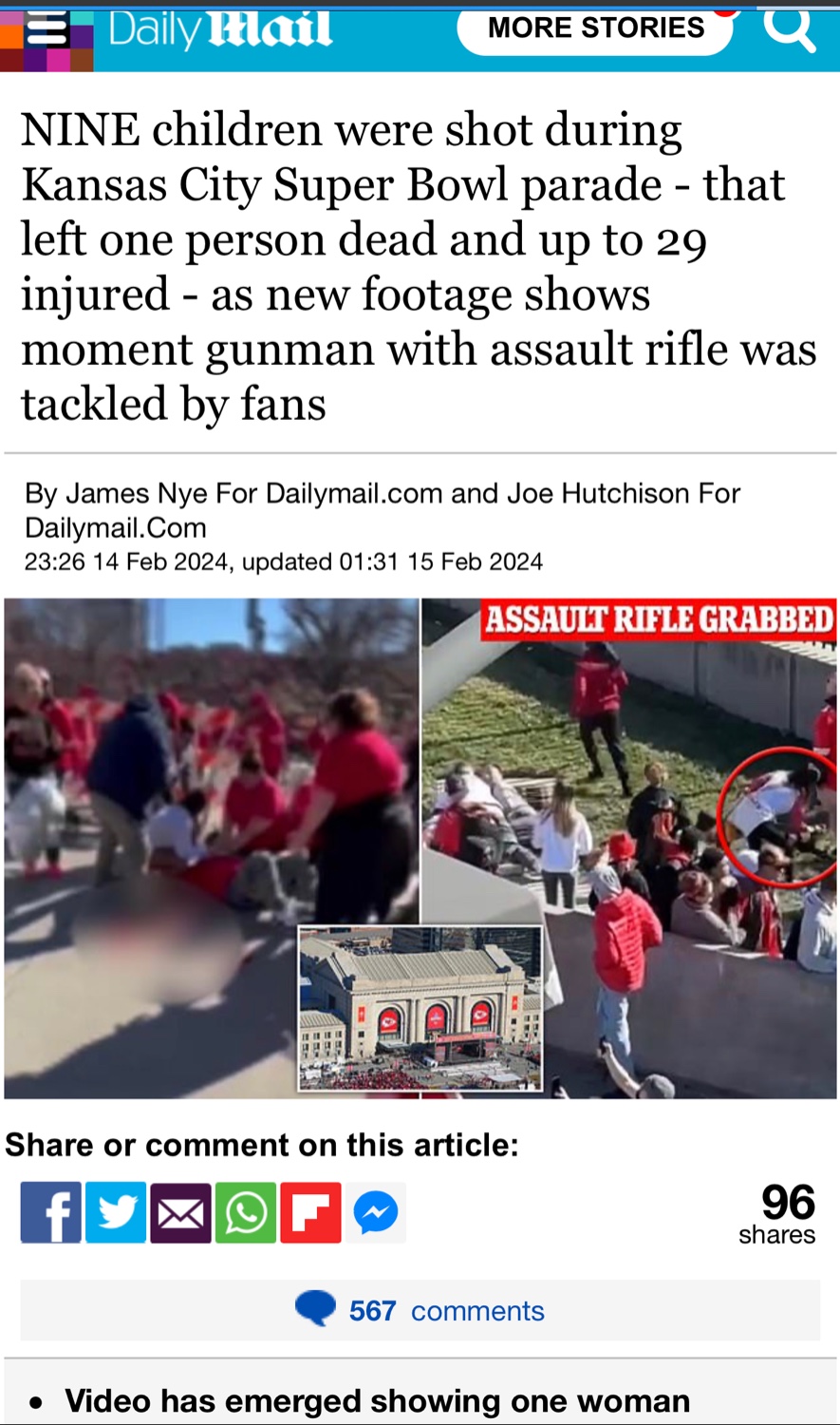 กราดยิงที่ Superbowl พาเหรด คนเจ็บ20+ รวมเด็กอายุ 6-15