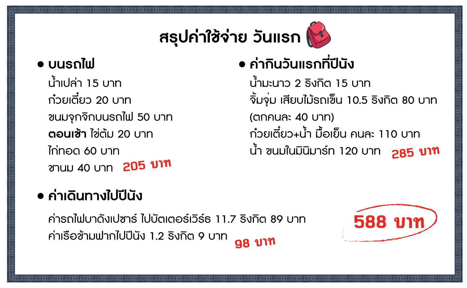 สรุปค่าใช้จ่ายคร่าวๆ ตั้งแต่วันแรกตอนที่เริ่มขึ้นรถไฟ อันนี้ยังไม่รวมค่ารถไฟและค่าที่พักนะคะ