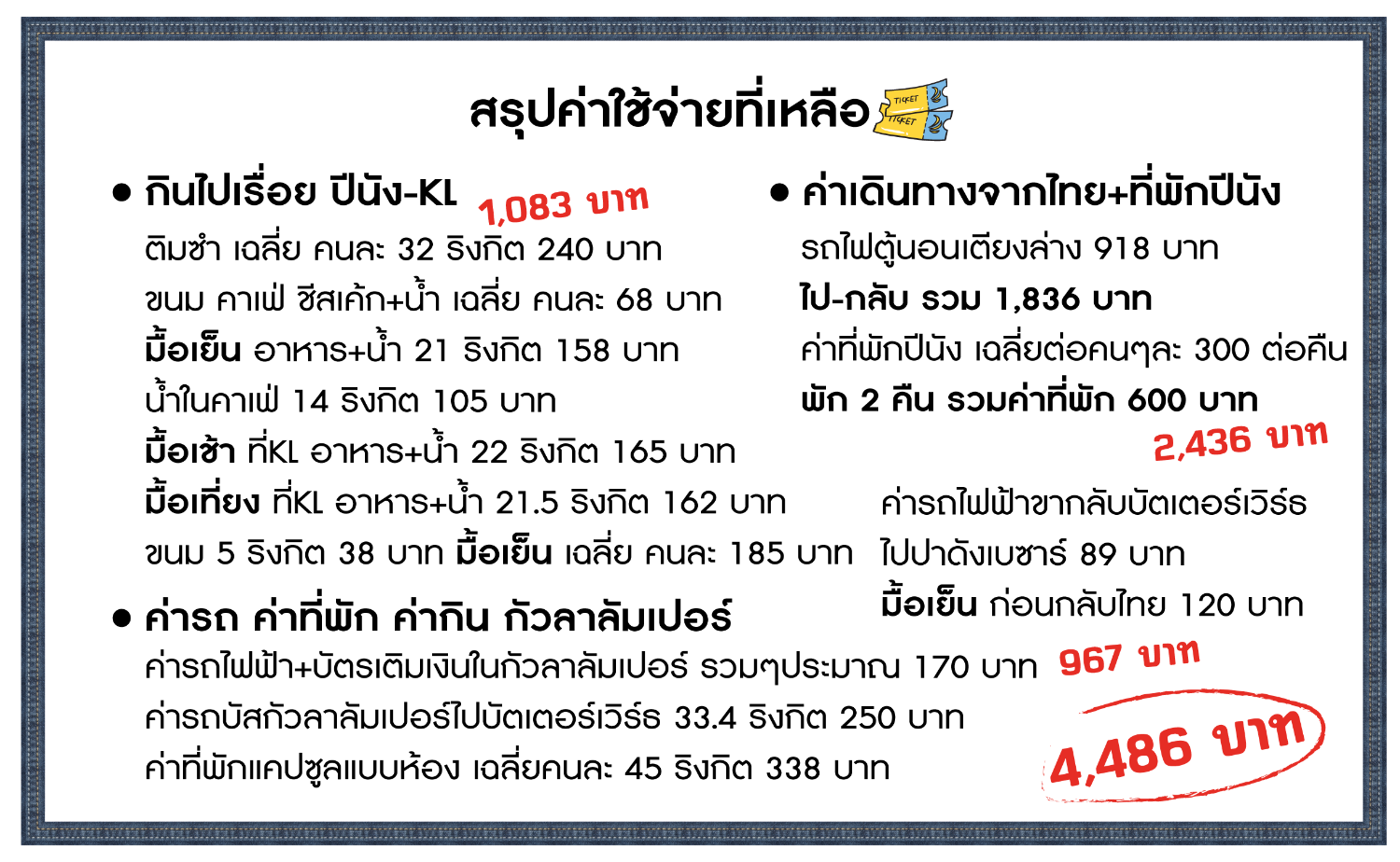 แบกเป้ เที่ยว “นั่งรถไฟไป มาเลเซีย” ปีนัง-กัวลาลัมเปอร์ 5 คืน 6 วัน งบ 5,650 บาท