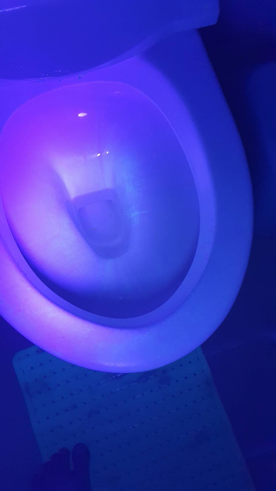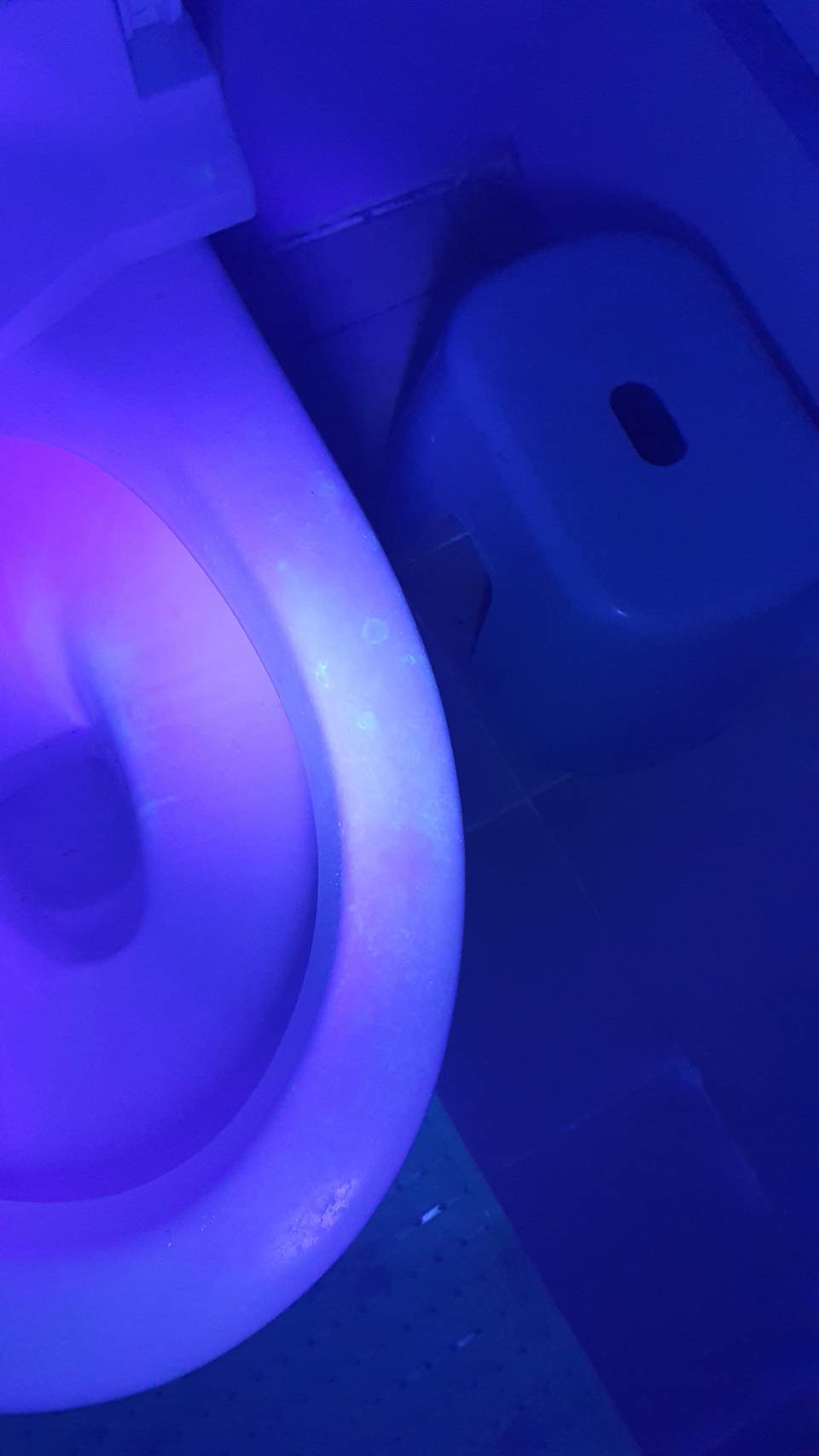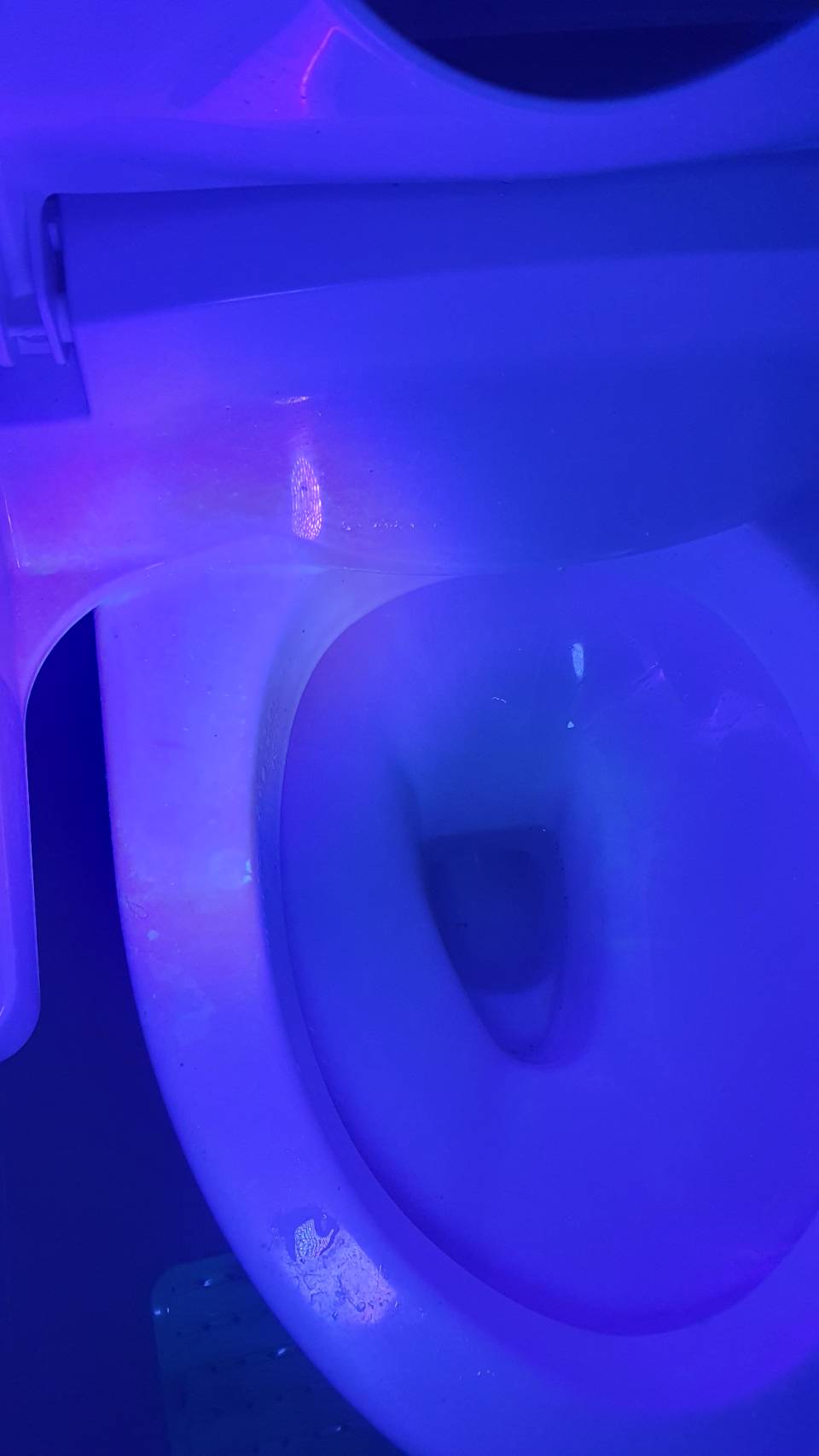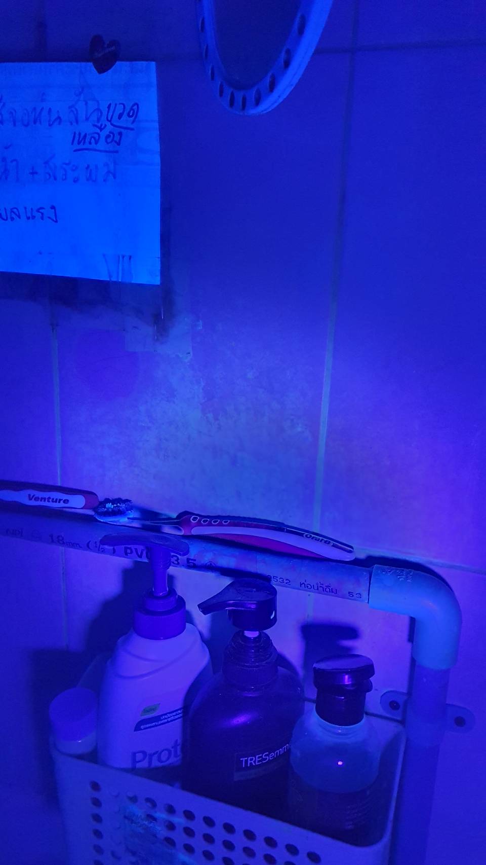 เลยอยากรู้สภาพห้องน้ำตัวเองเป็นยังไง เลยสั่ง ไฟฉาย uv มาส่องห้องน้ำดูหน่อย