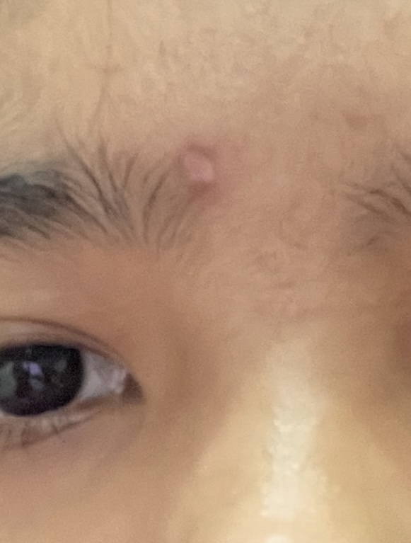 เป็นตุ่มนูนแดง มีรอยบู๋มตรงกลาง 6 ปี ไม่คัน รู้สึกปกติ แต่ถ้าสัมผัสจะเจ็บ