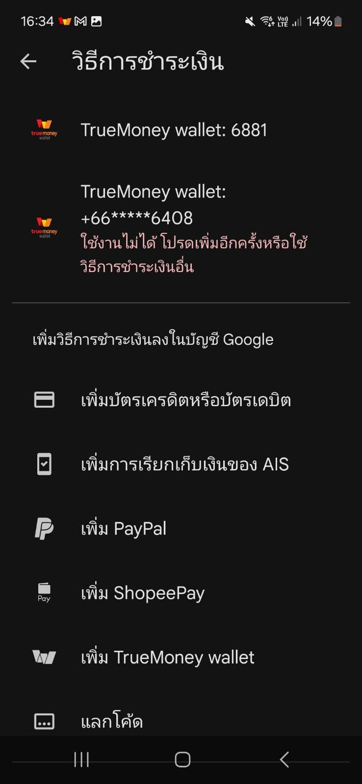 google play true wallet ไม่พร้อมใช้งาน