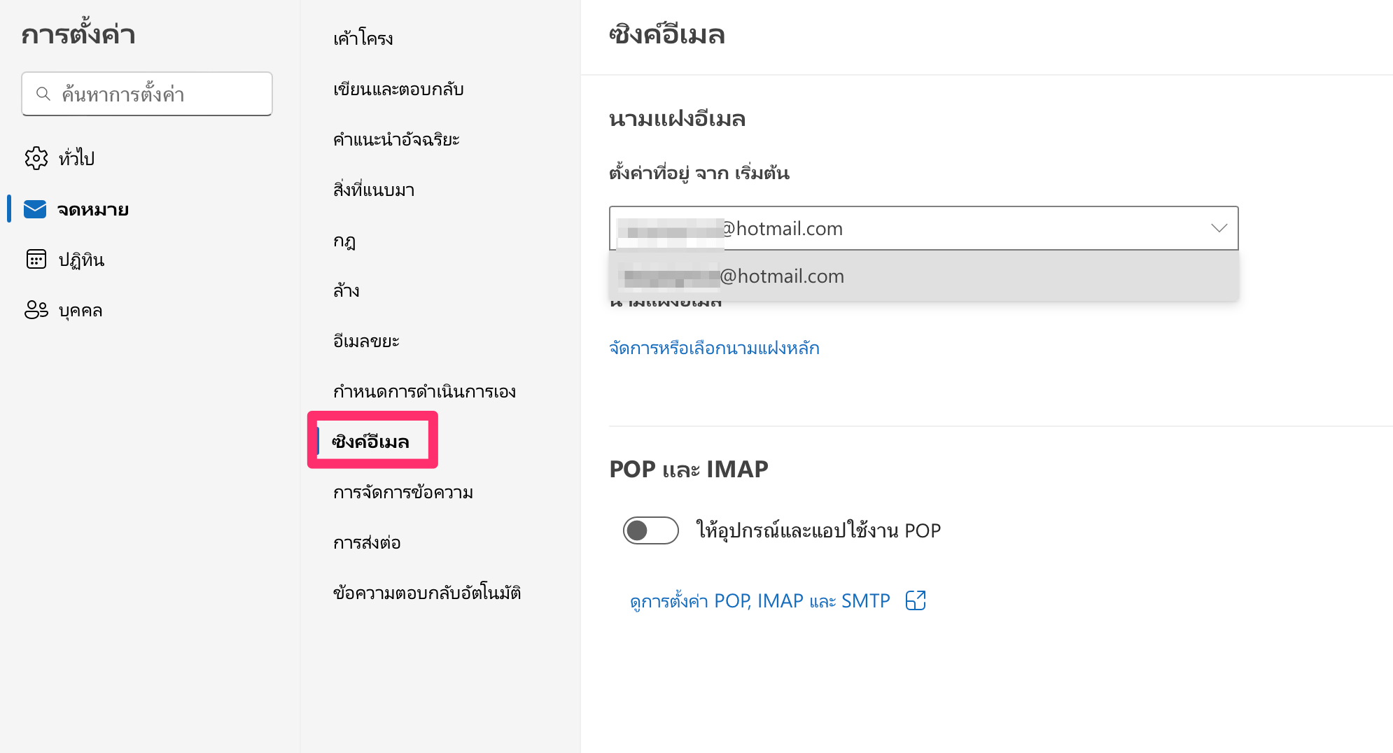 เคยซิงก์อีเมล gmail ไว้กับ hotmail อยากเอาออกแต่หาปุ่มไม่เจอ