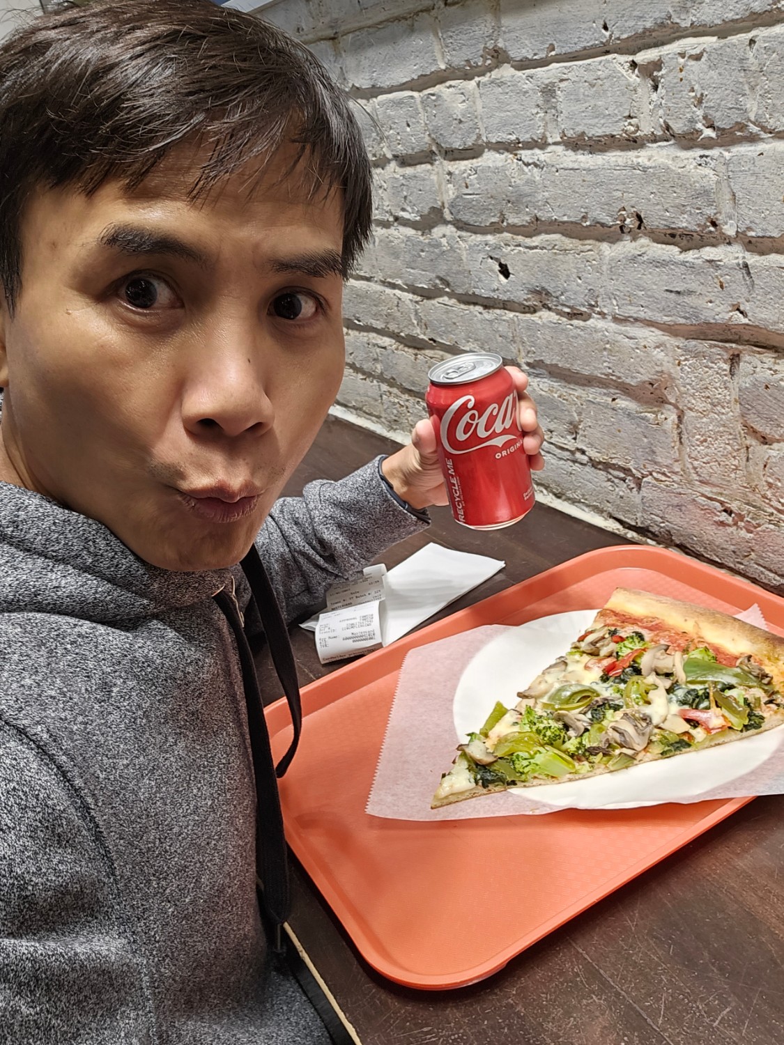 ออกมาแล้วตรงดิ่งไปโฮสเทลเพื่อฝากกระเป๋าแล้วไปหาอะไรกิน ทริปนี้พักโฮสเทล HI New York City Hostel ห้อง 4 เตียง แถว ๆ ย่านฮาเร็ม โฮสเทลใหญ่กว้างขวางอาหารเช้าที่คาเฟ่อร่อย ส่วนตัวชอบย่านนี้นะไม่พลุกพล่านและก็ไม่ได้เงียบเกิน แต่ๆ ฝากกระเป๋าแล้วออกไปกินพิซซ่าร้าดังในย่านนี้ดีกว่าหาข้อมูลในกูเกิลมาแล้วได้ 4.5 ร้านนี้แหละไม่ไกลจากที่พักด้วย