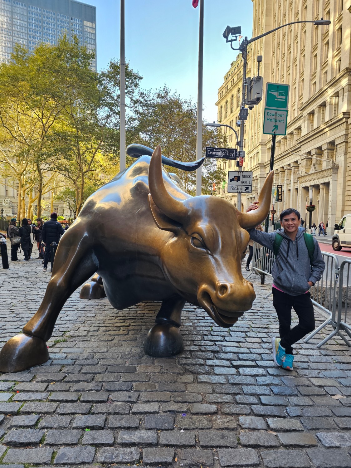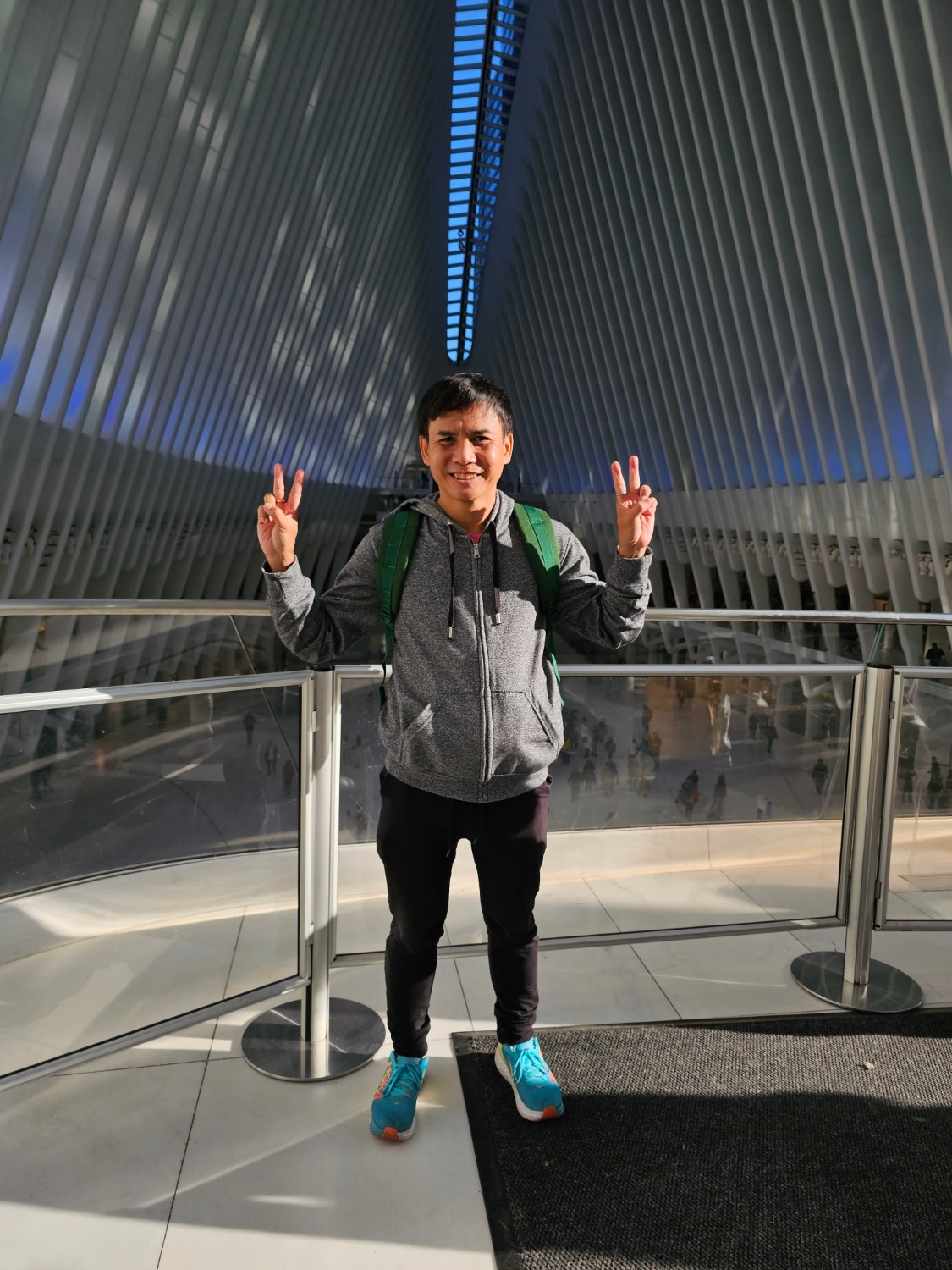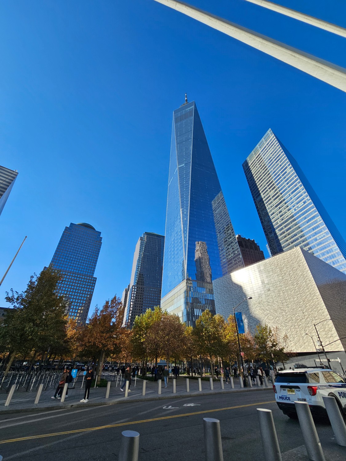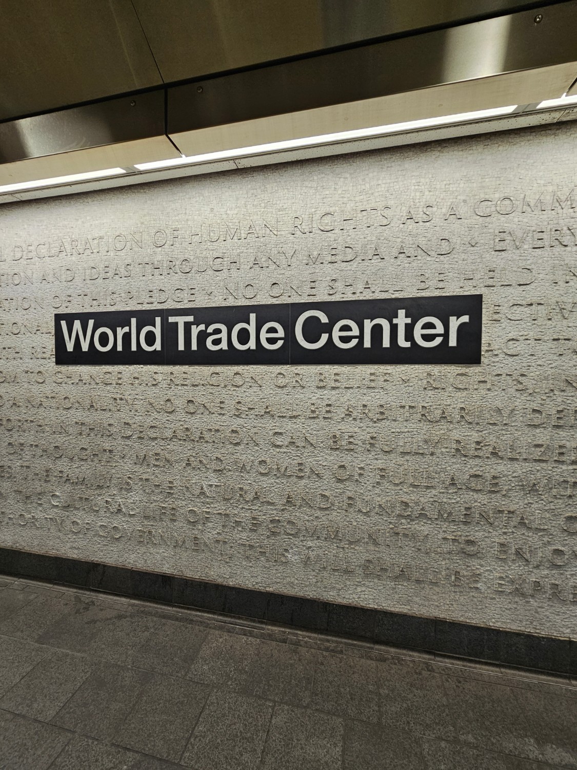กินข้าวเสร็จก็นั่งรถไฟสาย 1 เพื่อไปเดินเล่นแถวตึก one worldtrade และจะไปจับไข่กระทิง 5555555
