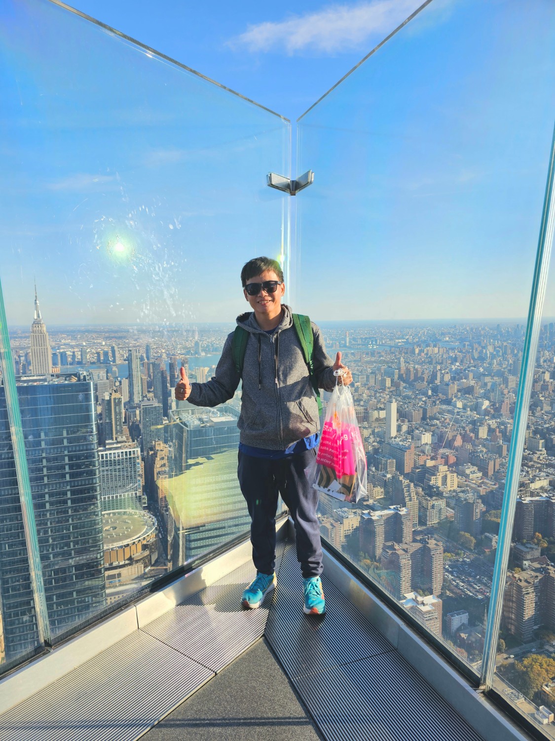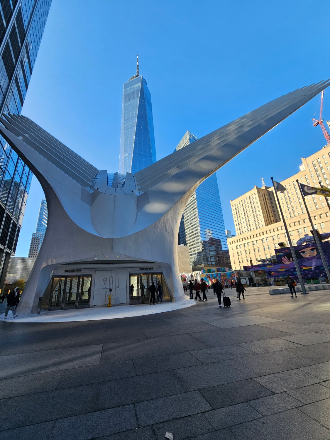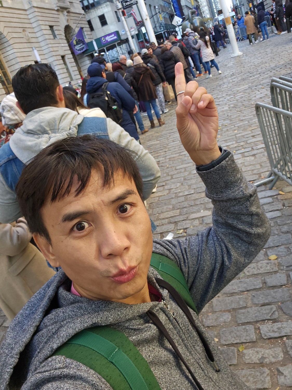 กินข้าวเสร็จก็นั่งรถไฟสาย 1 เพื่อไปเดินเล่นแถวตึก one worldtrade และจะไปจับไข่กระทิง 5555555