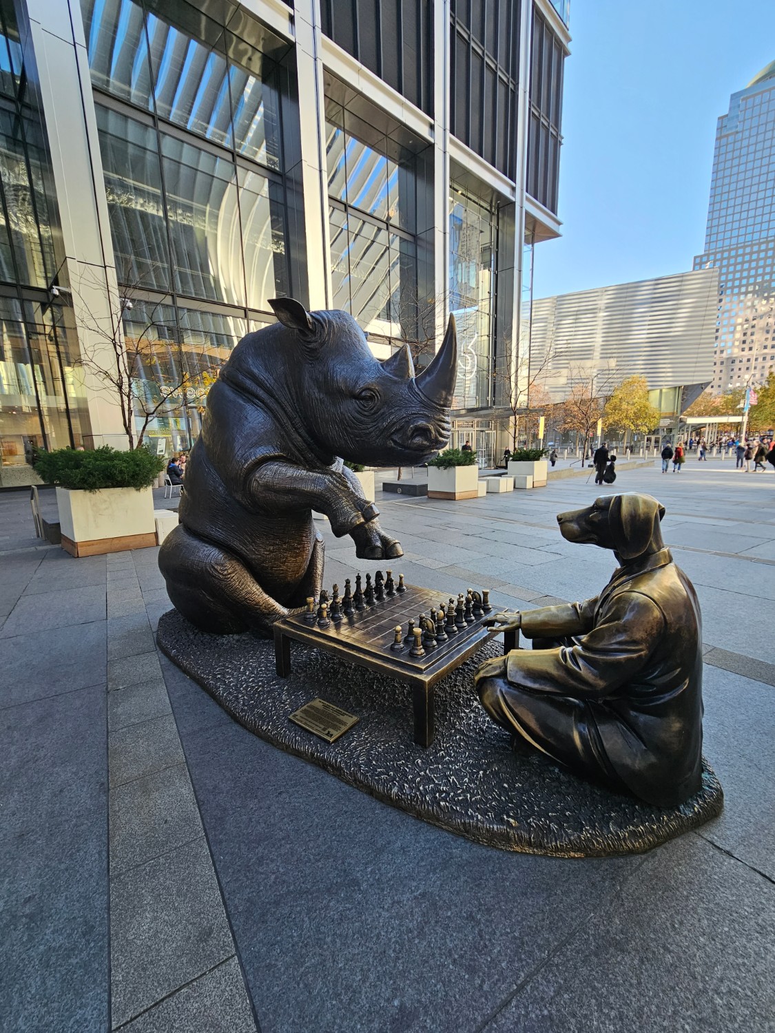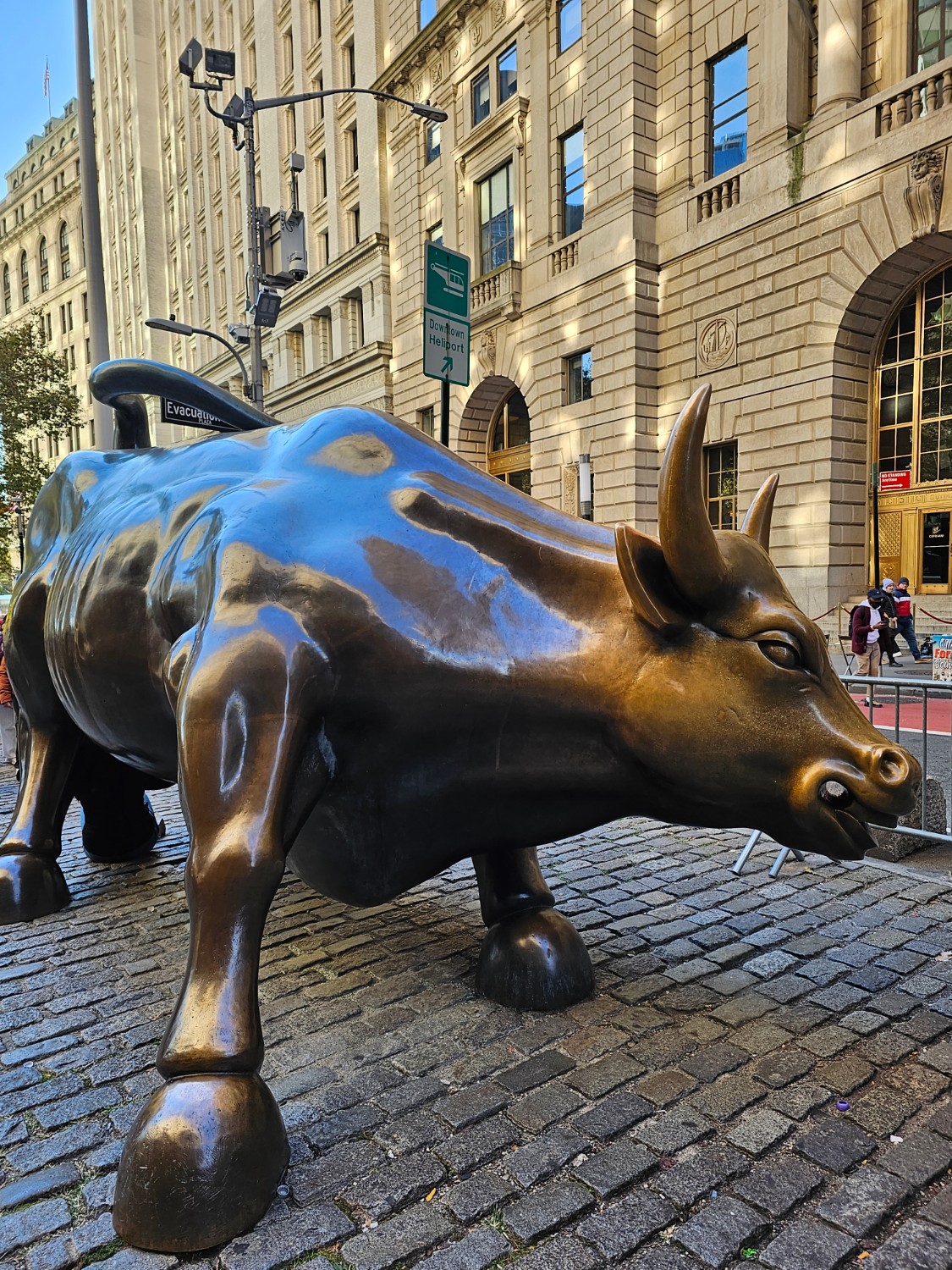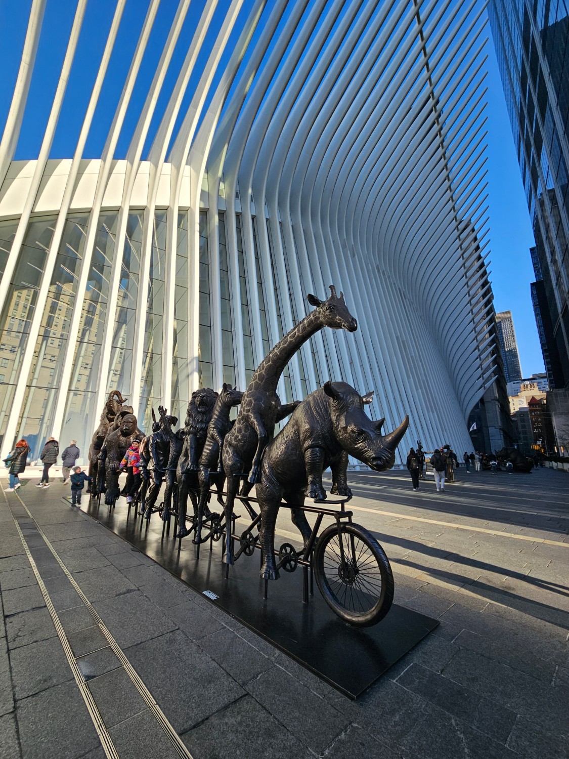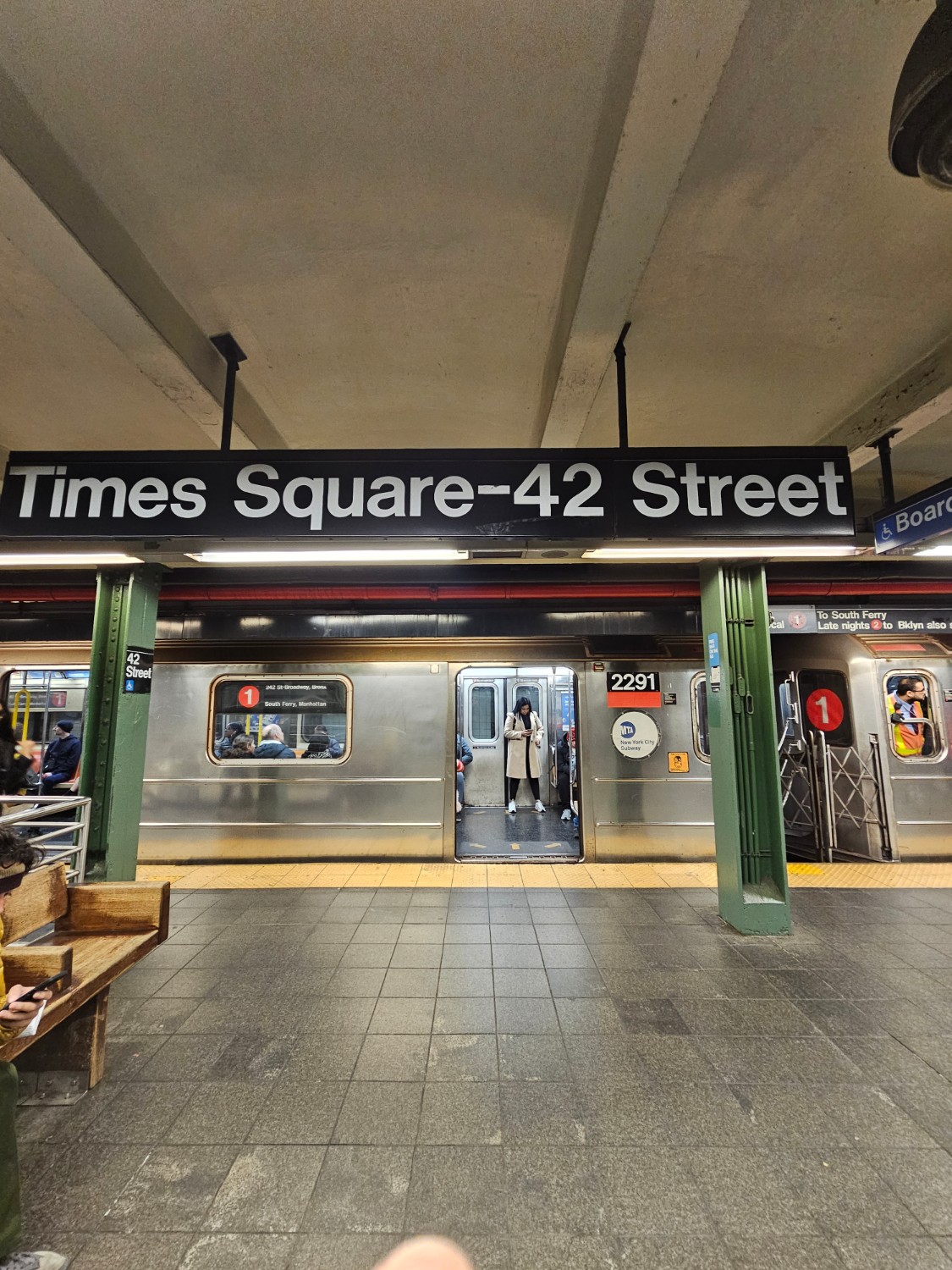 กินข้าวเสร็จก็นั่งรถไฟสาย 1 เพื่อไปเดินเล่นแถวตึก one worldtrade และจะไปจับไข่กระทิง 5555555