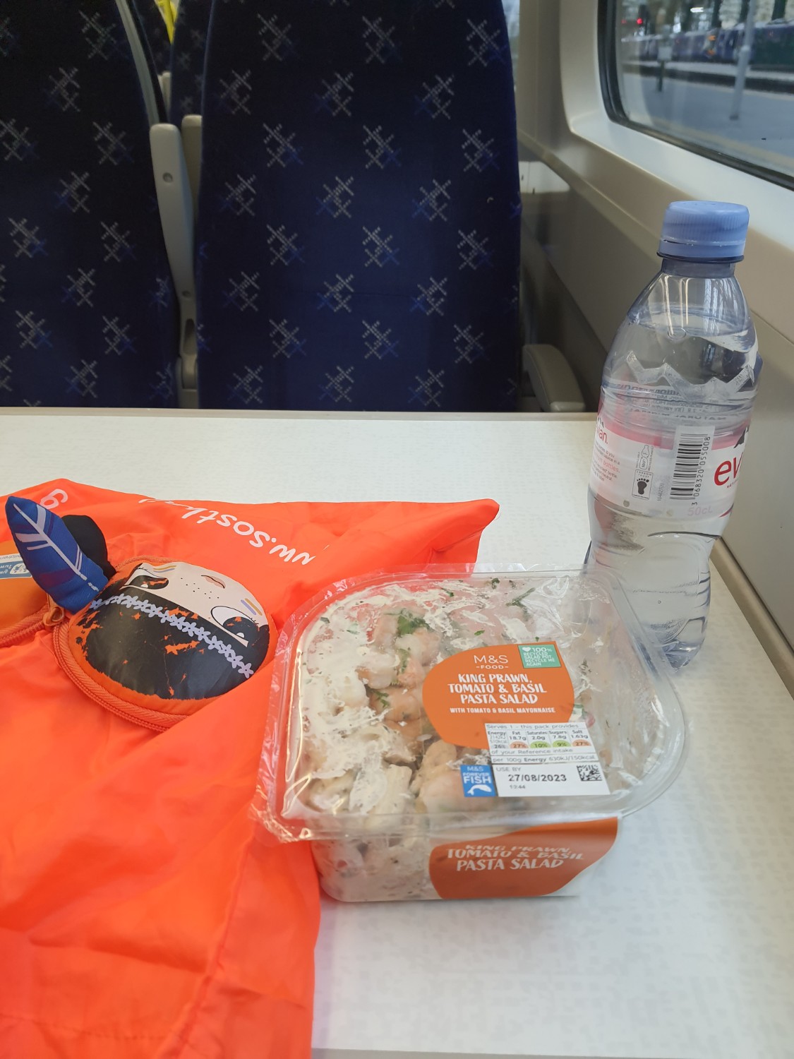 และบนรถไฟกินอาหารได้ไหมนั้น เราซื้อใส่กระเป๋าเข้าไปก่อนแล้วดูว่ามีป้ายห้ามไหม กับคนบ้านเขากินกันไหม ซึ่งก็ไม่มีป้ายห้ามและกินกันหลายคนเลย เราก็เลยค่อยจัดตามมั่ง (เลือกอาหารกลิ่นไม่แรงฮะ)