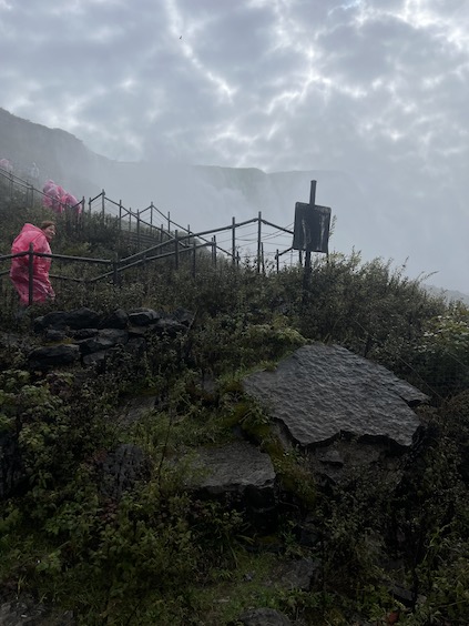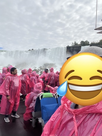 สำหรับคนที่ไปขึ้นเรือ ทางเรือจะแจกเสื้อกันฝนสีแดงไว้ใส่กันเปียก (ฝั่งแคนาดาก็มีเรือพาชมน้ำตกแบบนี้เหมือนกัน แต่เสื้อกันฝนจะเป็นสีฟ้า)