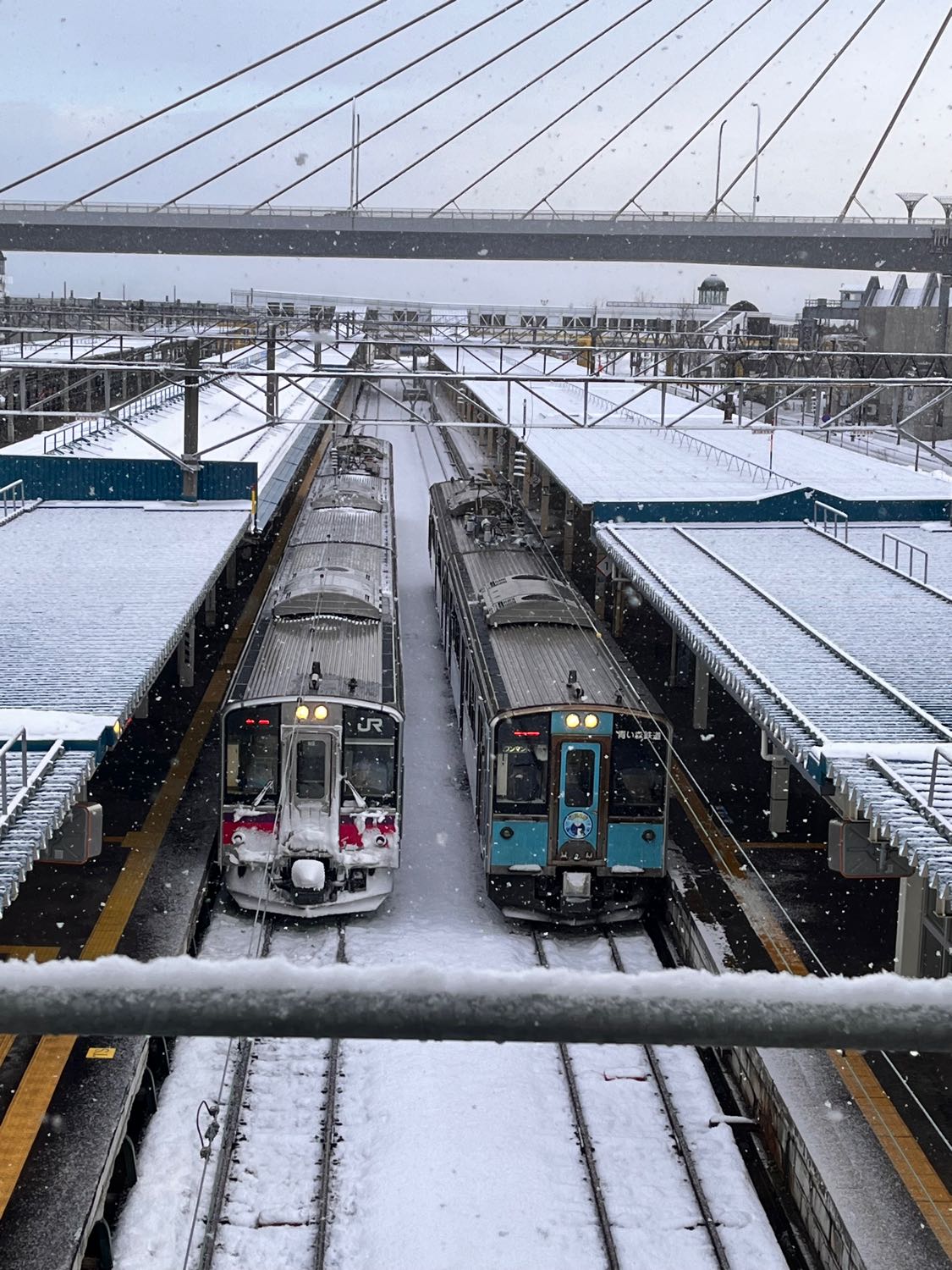 สถานีรถไฟอาโอโมริยามเช้าหิมะตก