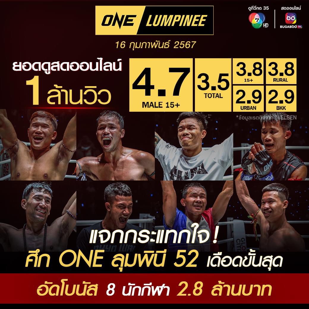 เรตติ้งมวย ONE 170 วันที่ 24 ม.ค. 68 ได้ไป...